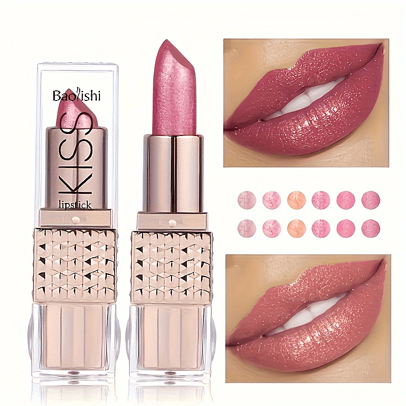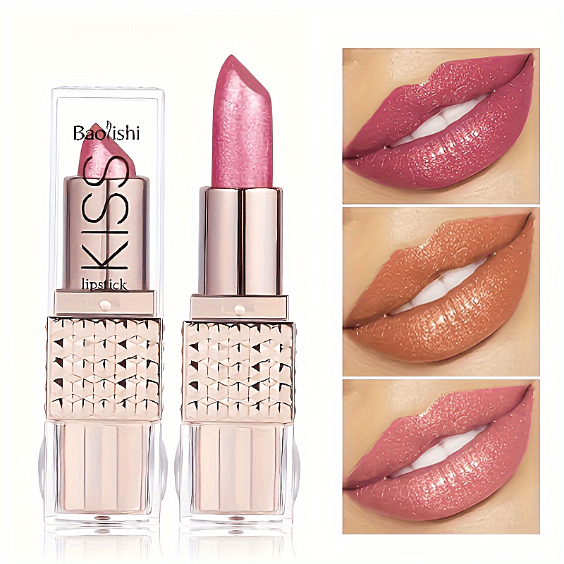 Mujer lápiz labial de terciopelo acabado metálico con brillo duradero