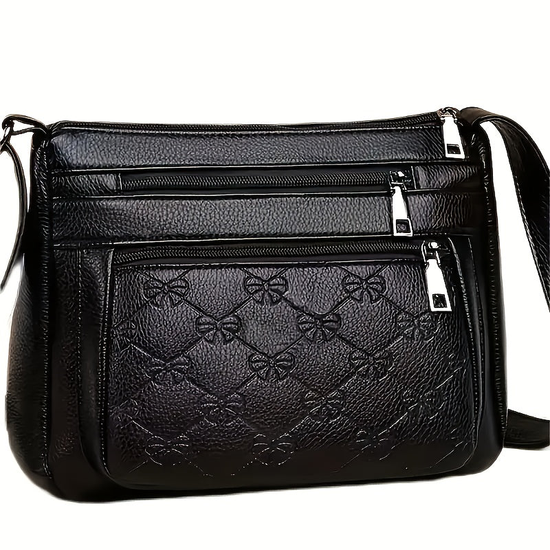 Bolso cruzado grande para mujeres para mamás negro PU correa ajustable minimalista