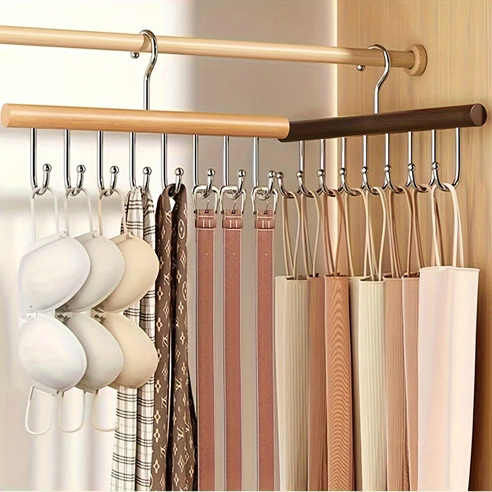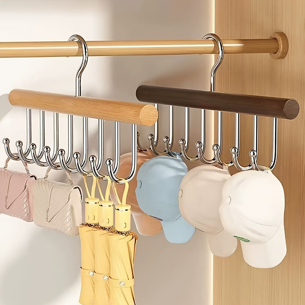 Organizador de armario colgante de madera con 8 ganchos para almacenamiento en armario y ahorro de espacio