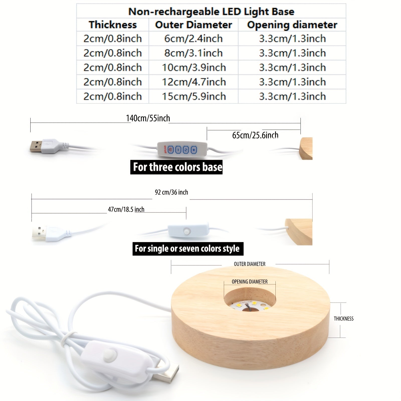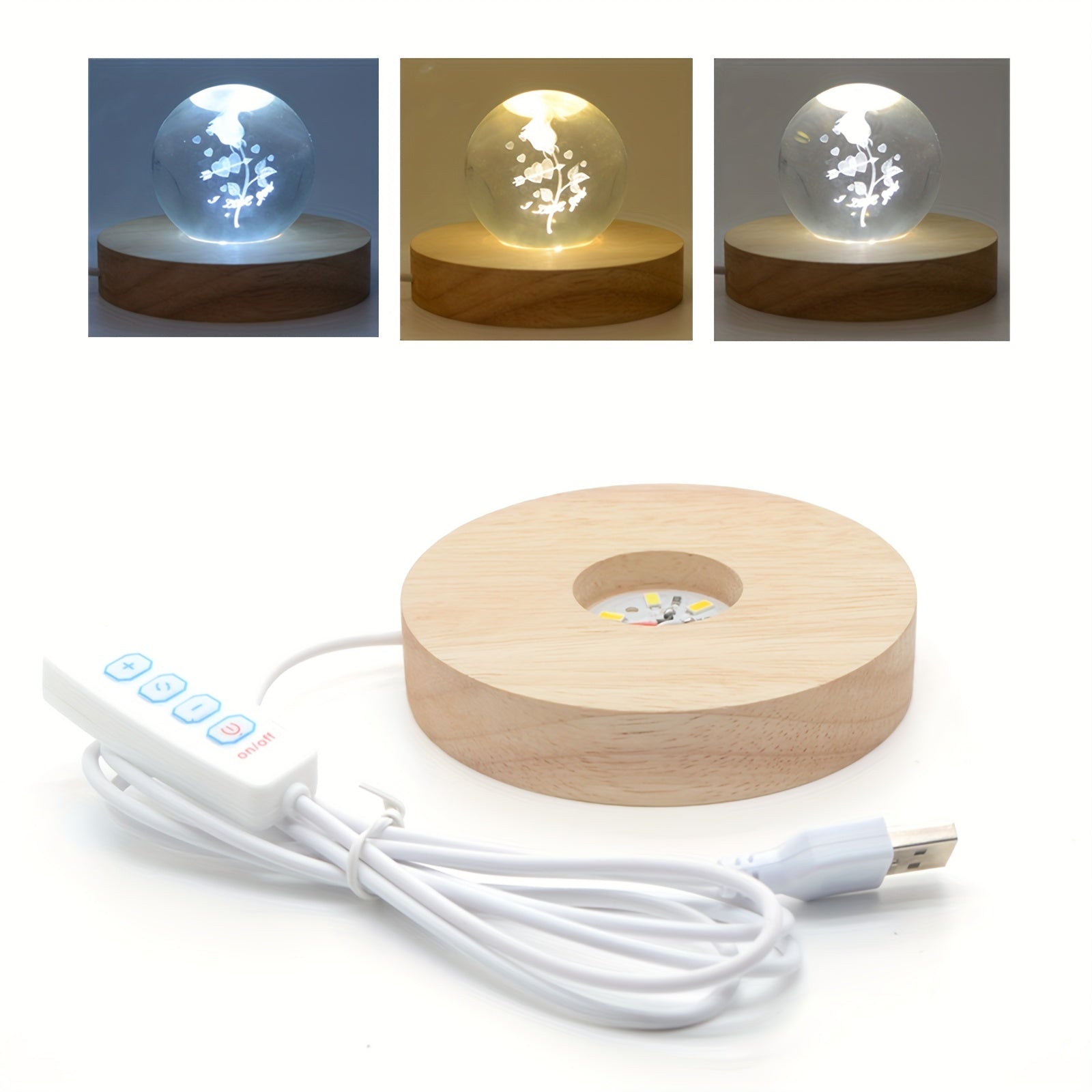 Base de exhibición de luz LED de madera para arte en cristal 3D de resina en múltiples colores
