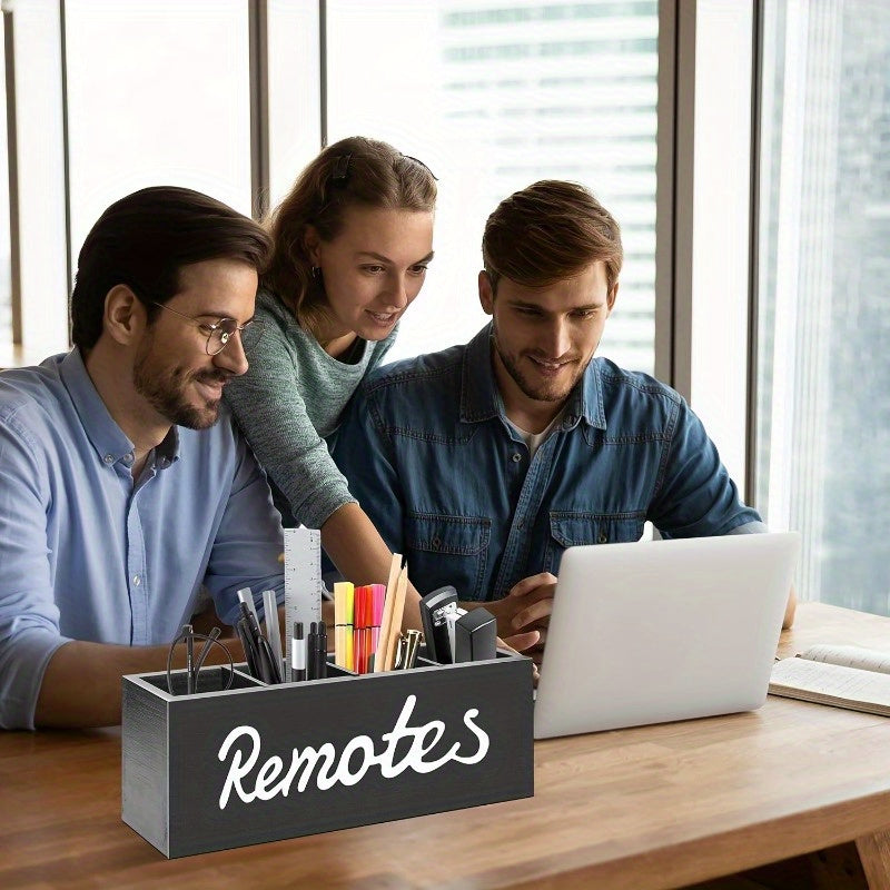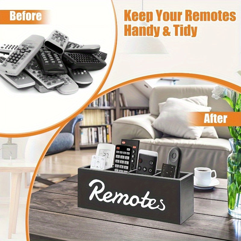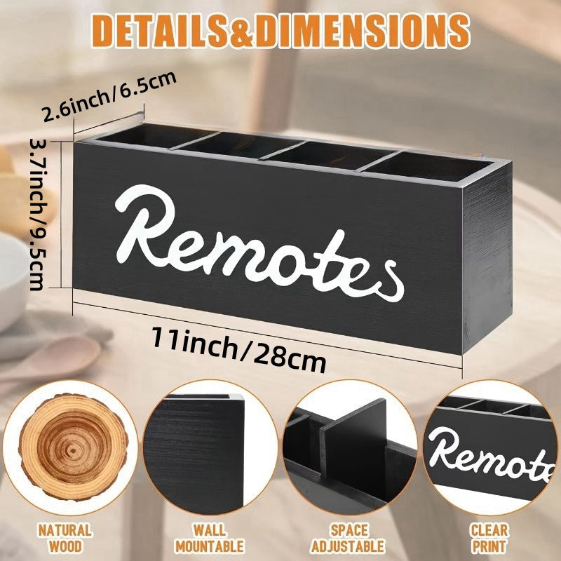 Soporte de control remoto de madera para pared con 4 compartimentos organizador de escritorio ganchos de utilidad