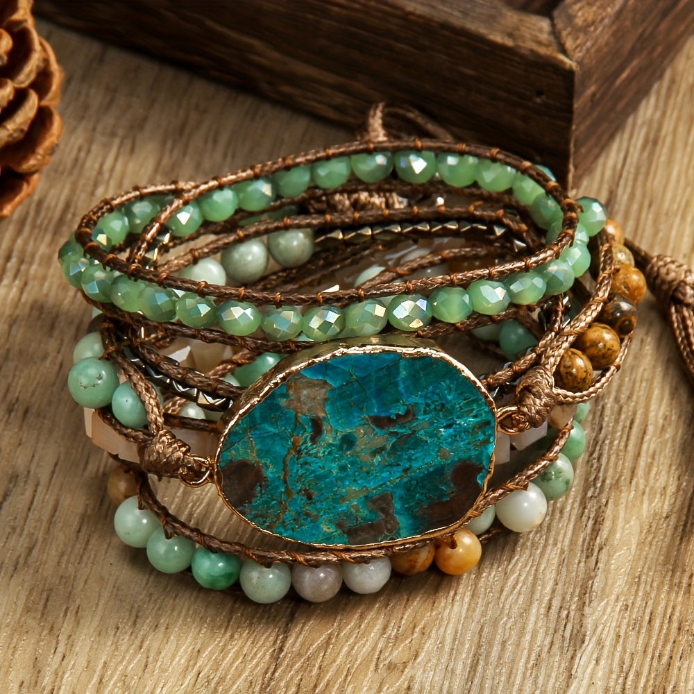 Pulsera envolvente de piedra natural bohemia con cuentas para verano y regalos