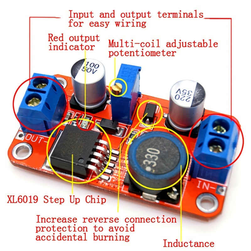 Módulo convertidor de voltaje elevador DC-DC ajustable de 3V-35V a 5V-40V, metálico, sin batería