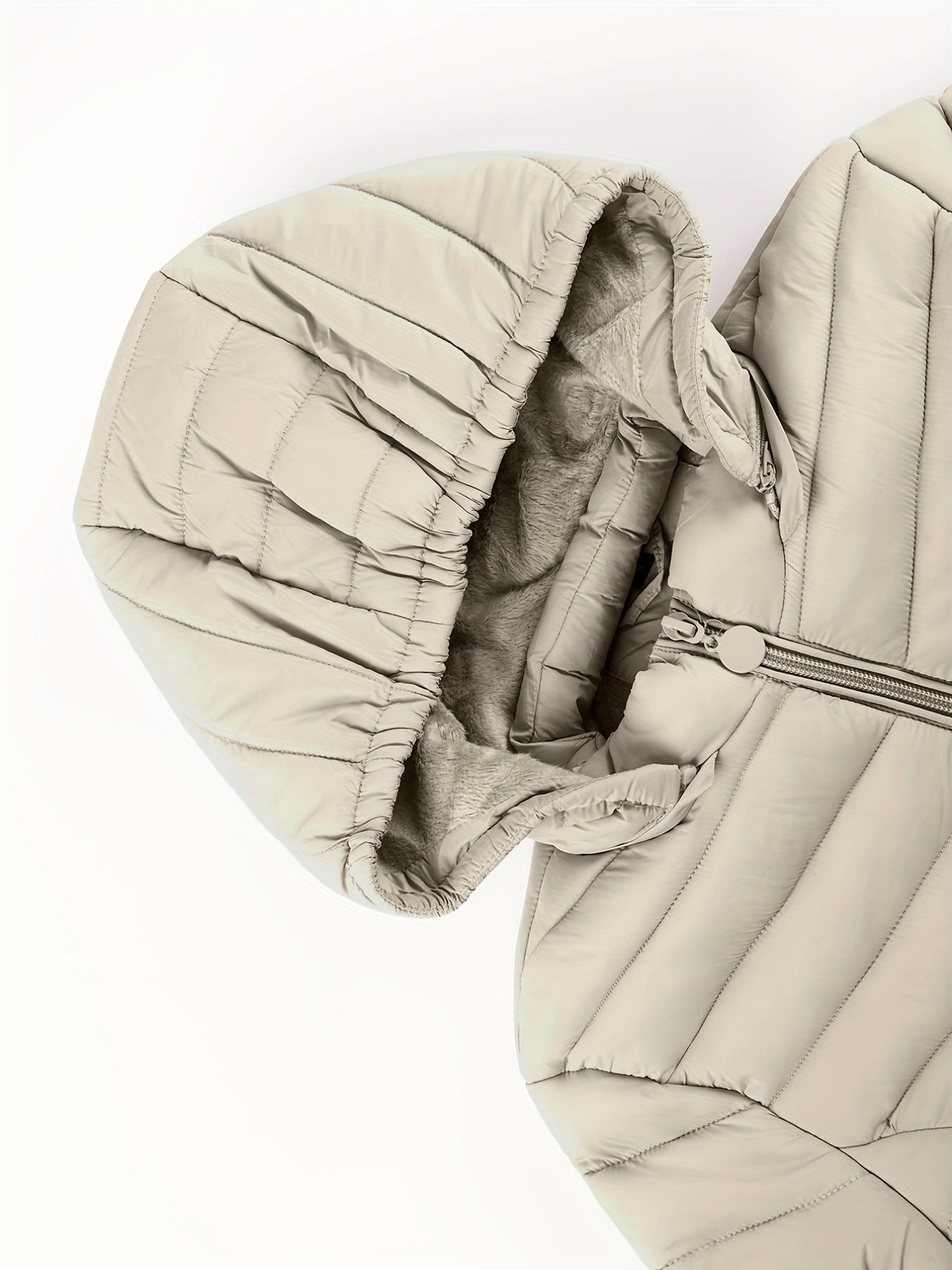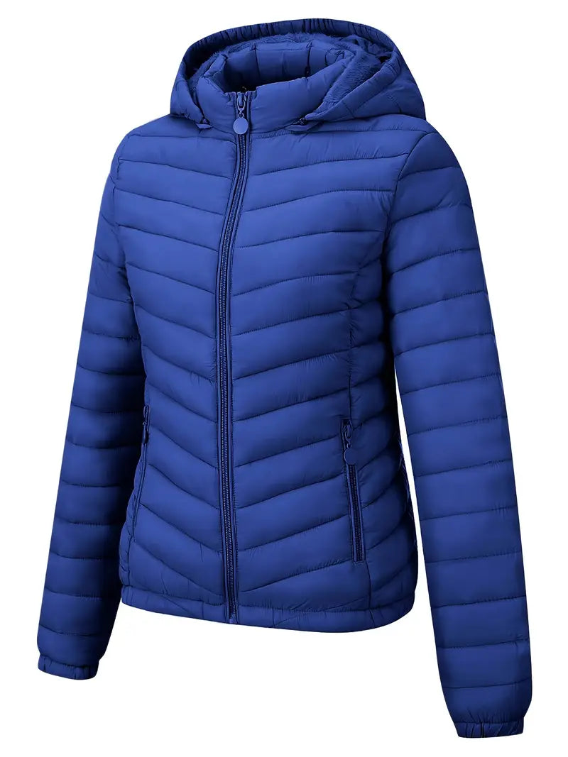 Abrigo acolchado con cremallera para mujer con bolsillos inclinados, manga larga, otoño e invierno, impermeable, no elástico