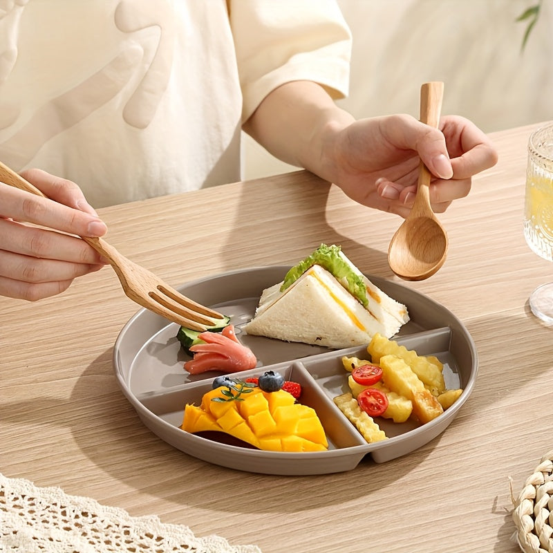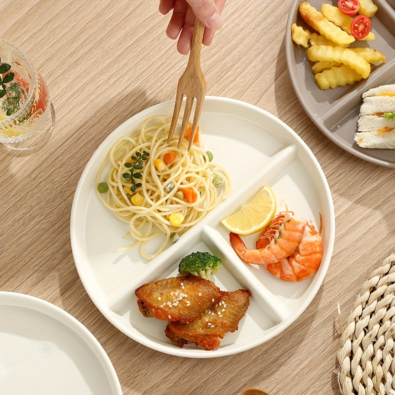 Platos con compartimentos de plástico 1/2/4 piezas redondos con 3 compartimentos aptos para microondas y lavavajillas