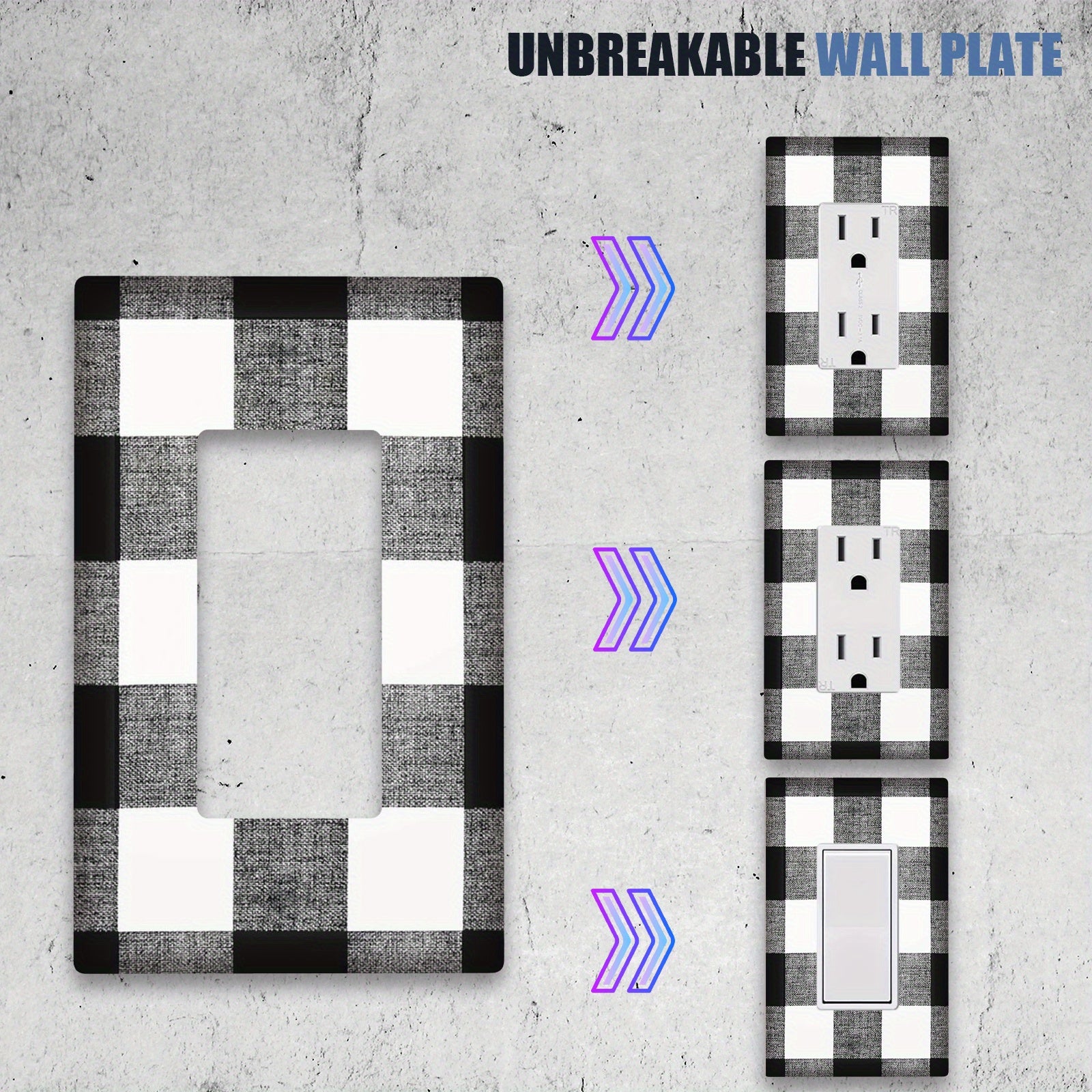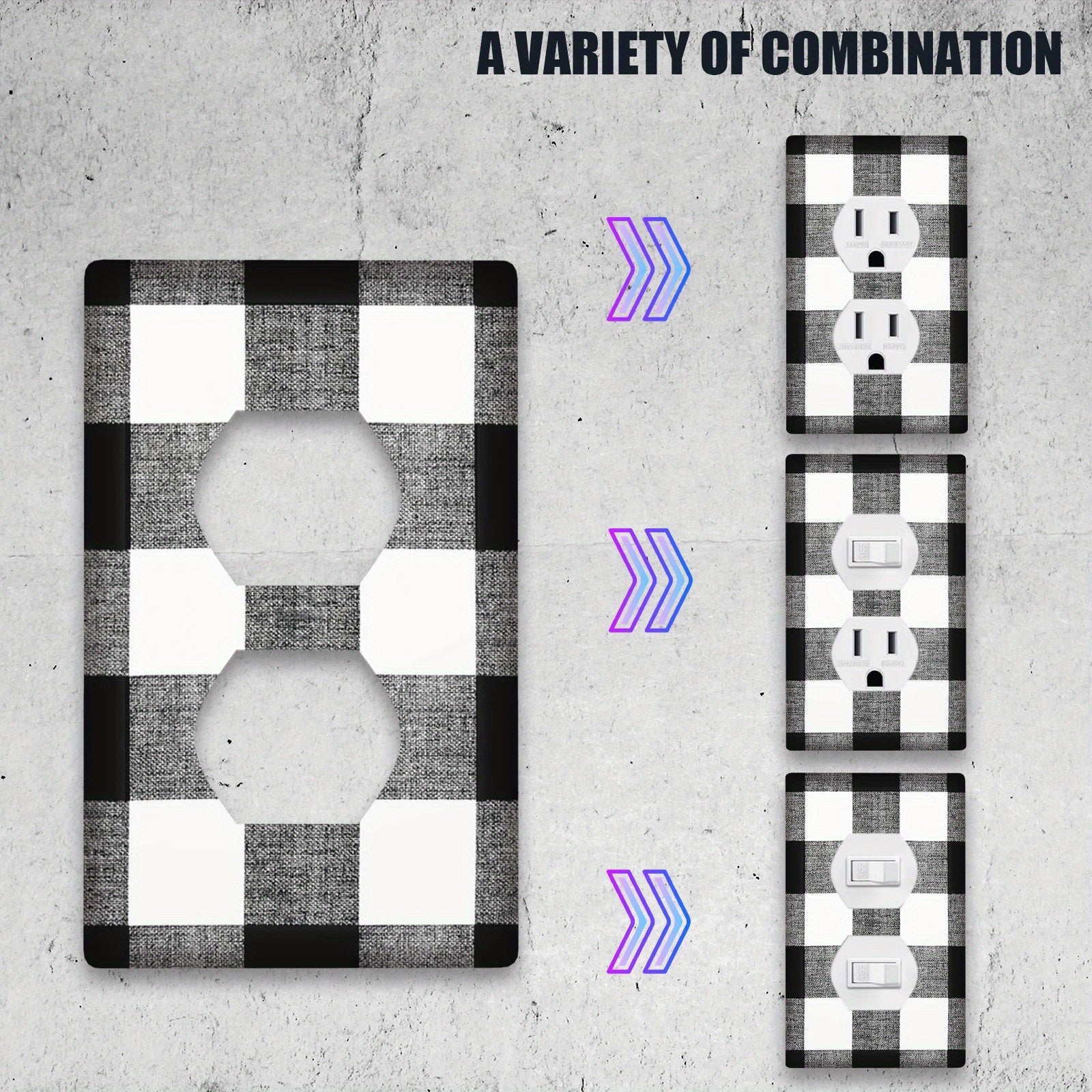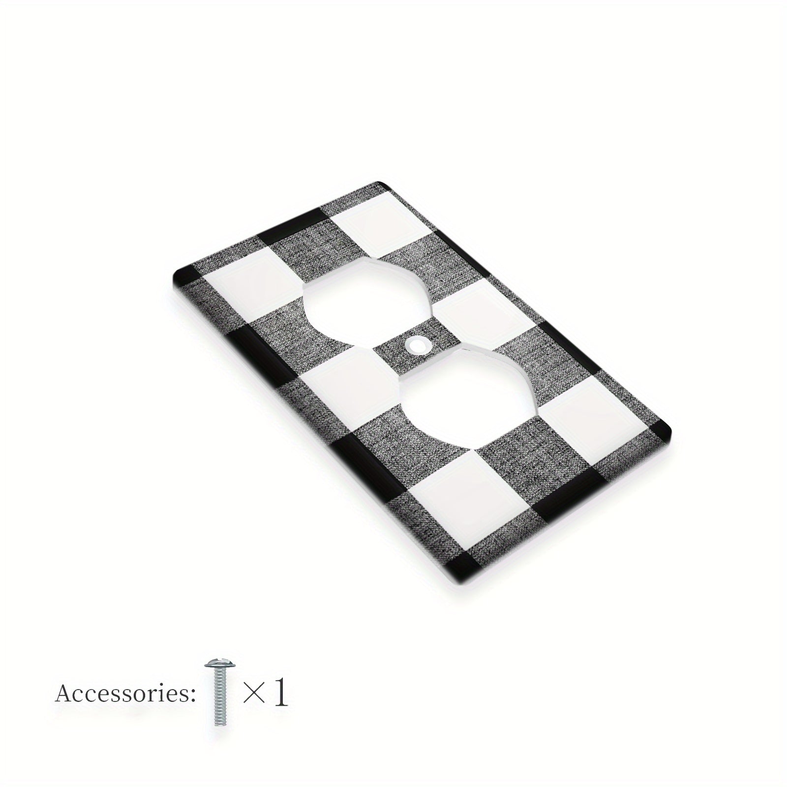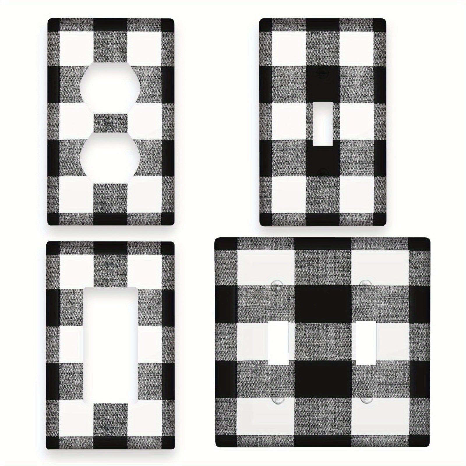 Cubierta de placa de pared en cuadros de búfalo en blanco y negro, para interruptor de luz de 1 y 2 canales, decoración