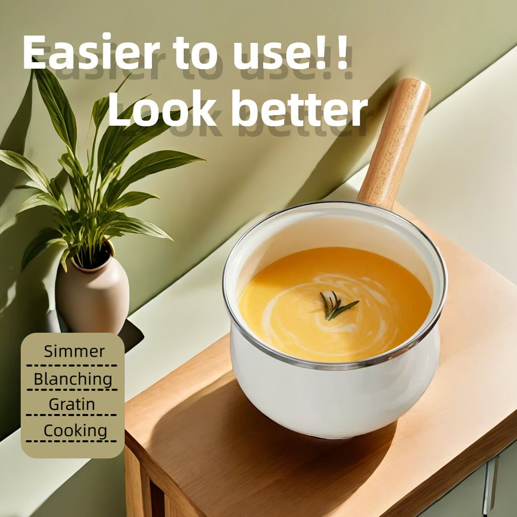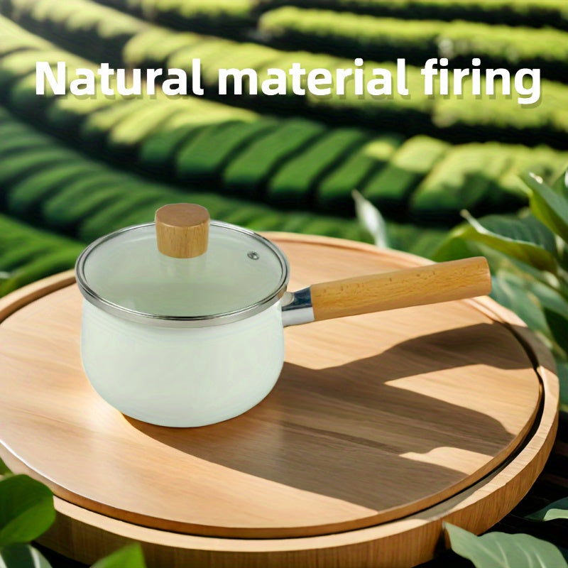 Cazo de esmalte de 6 pulgadas con tapa, olla pequeña para sopa, olla para leche para cocinar