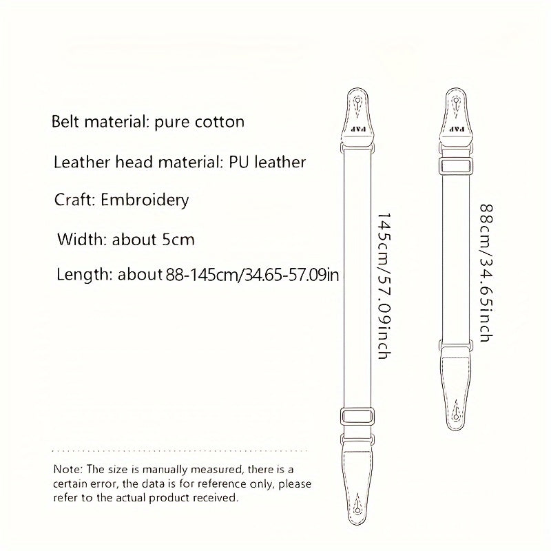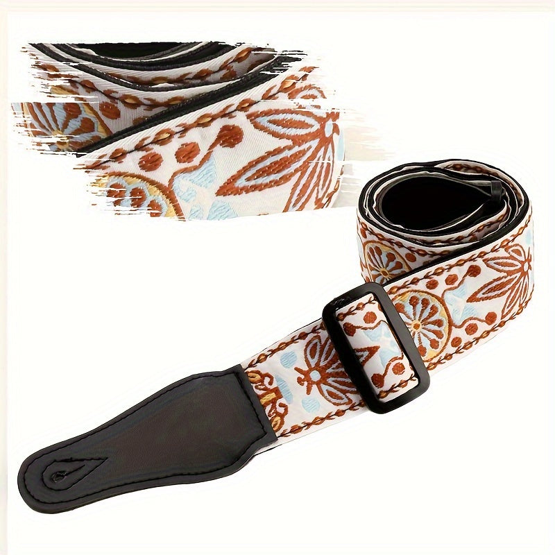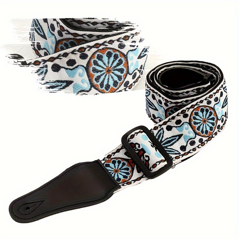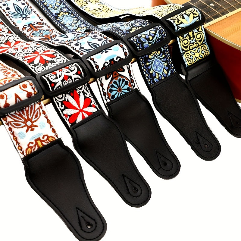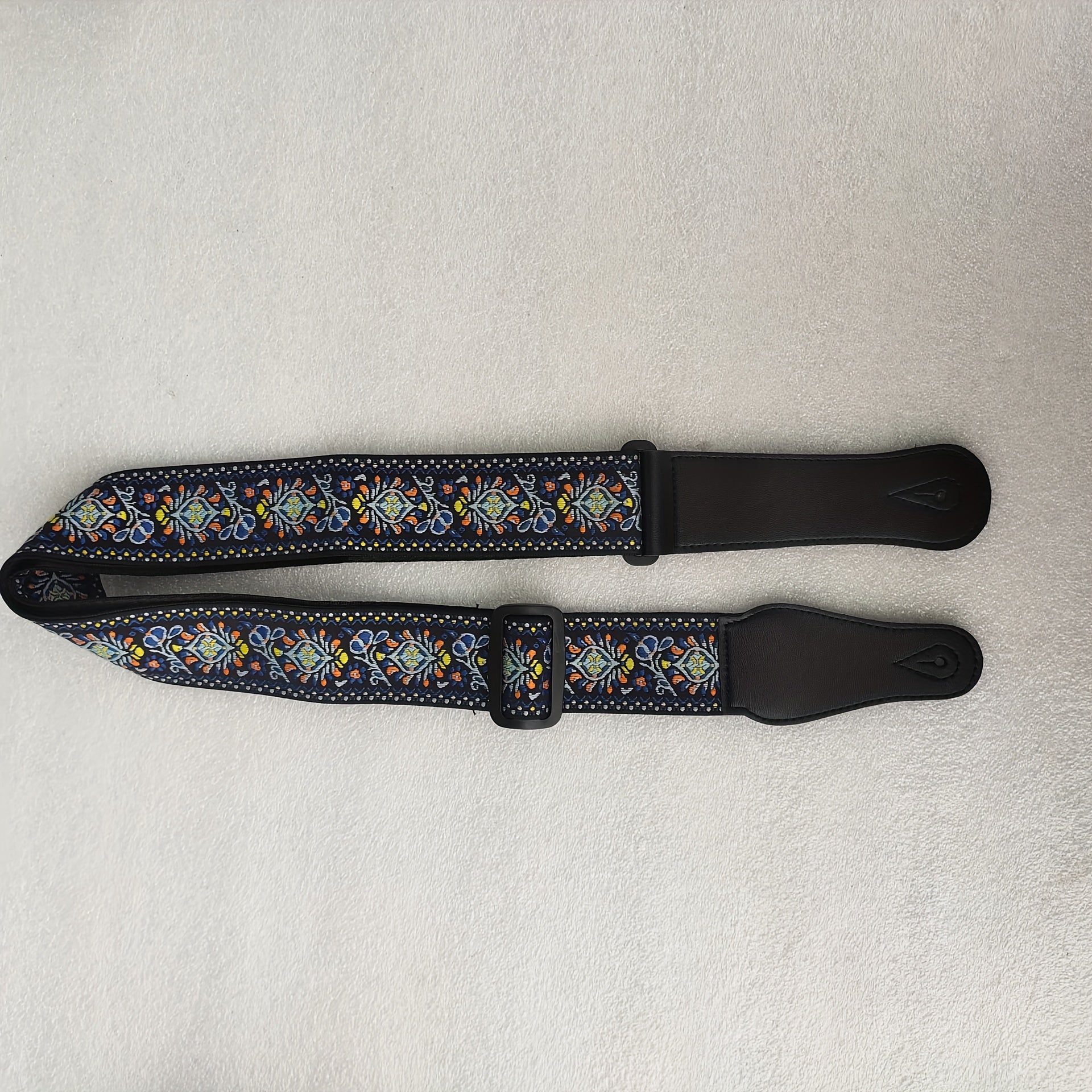 Correa de guitarra de lona con bordado de estilo nacional en rojo, amarillo, azul, verde y rosa