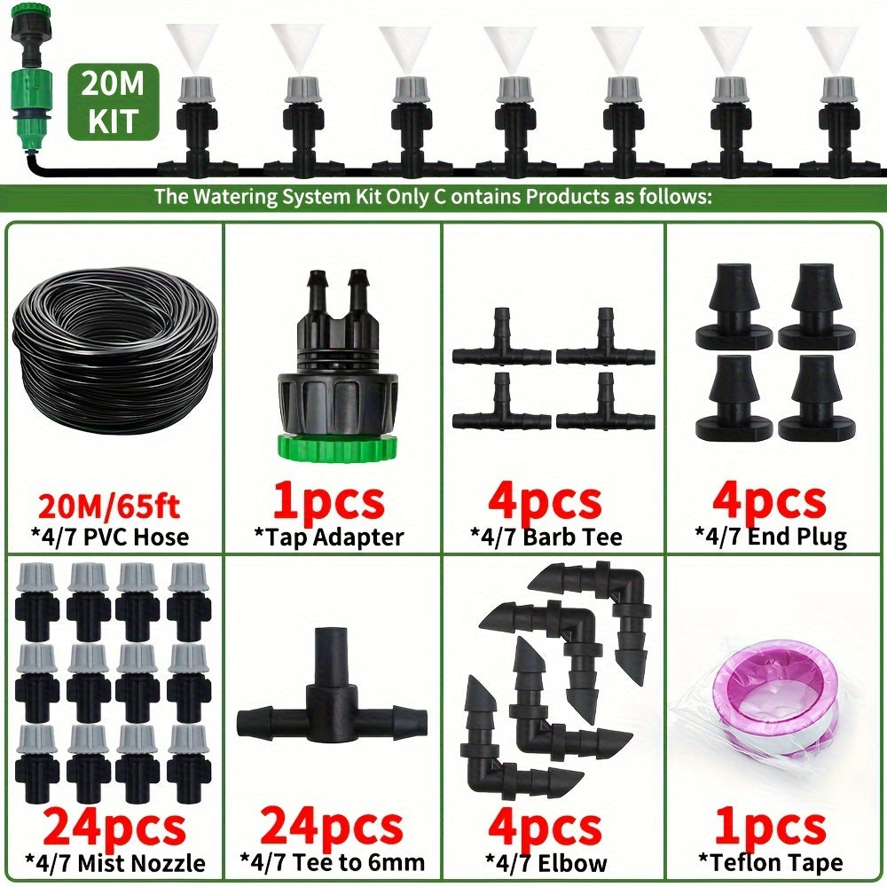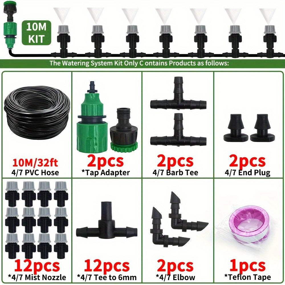 Sistema de riego automático con boquillas de niebla, rociador de manguera de jardín y conector en T de plástico