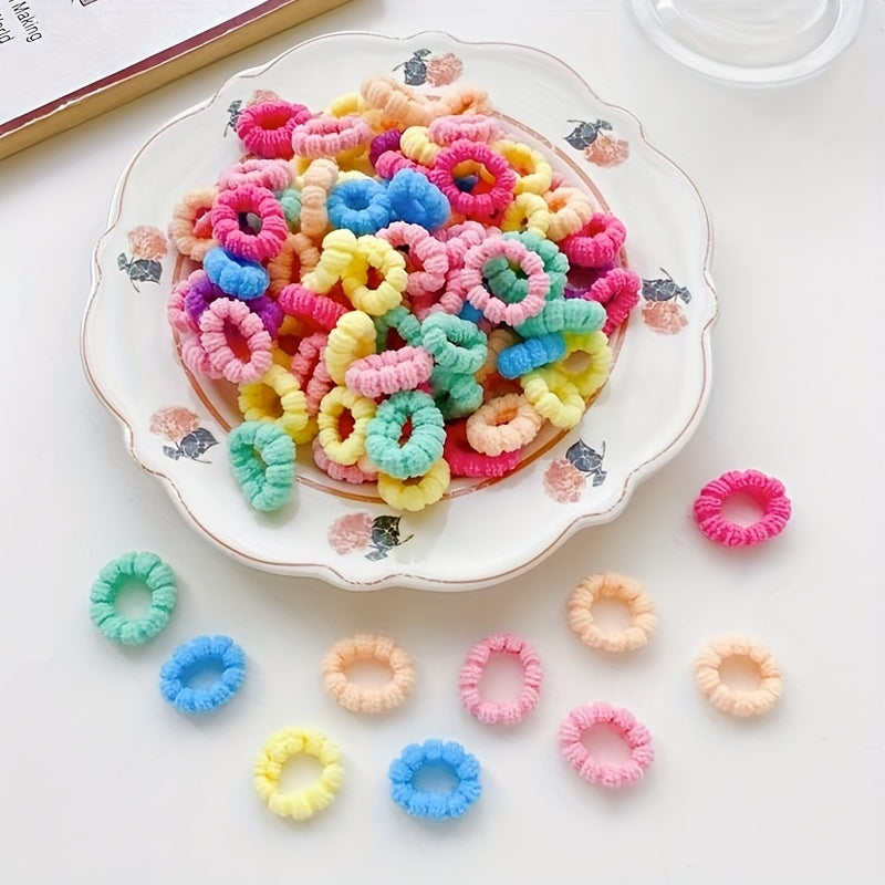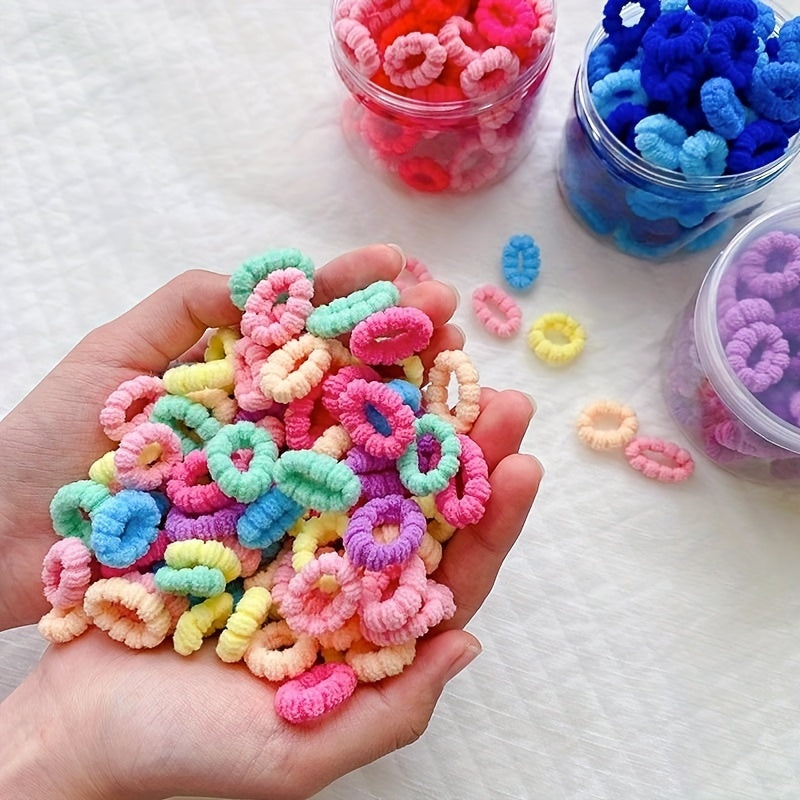 Paquete de 100 gomas de pelo elásticas para niñas, bandas de toalla de poliéster suave para uso diario