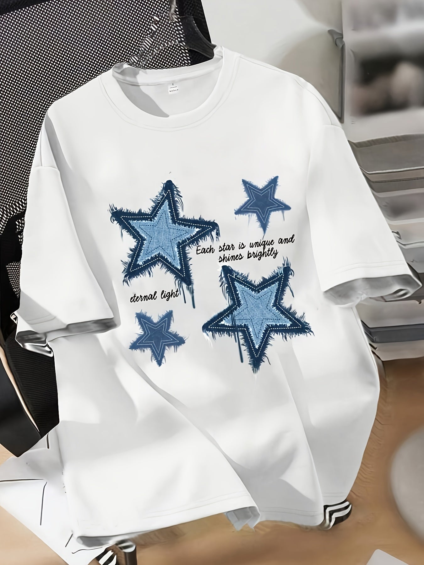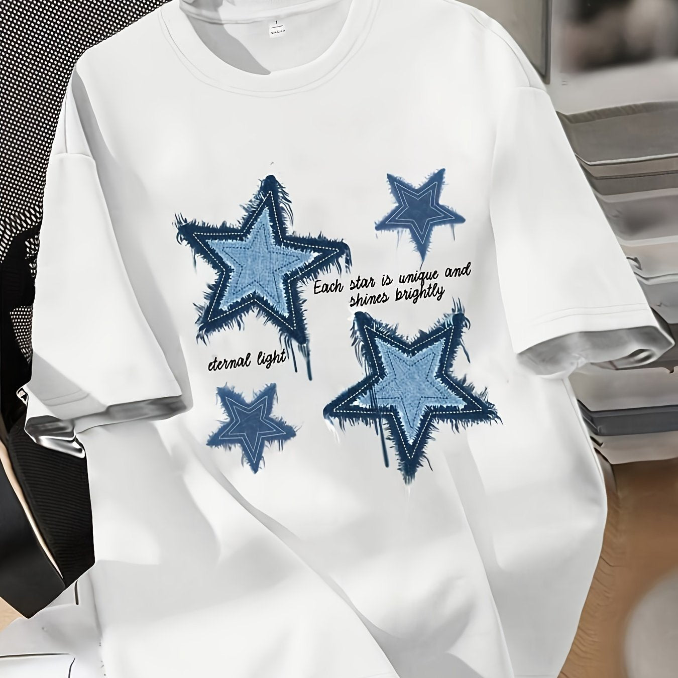 Camiseta de verano para mujer con patrón geométrico, cuello redondo, top casual