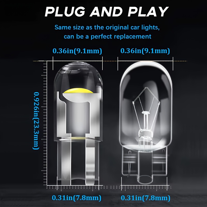10pcs bombillas LED para matrícula 6000K luces de cúpula de acrílico transparente