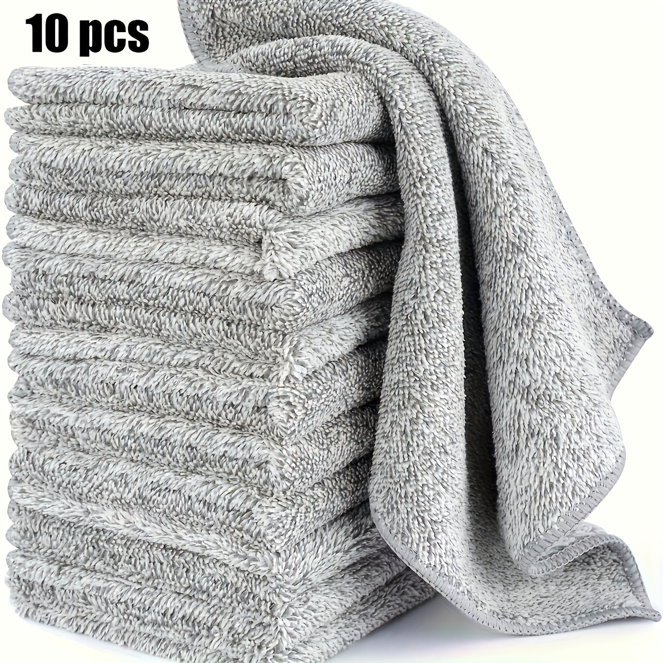 10 piezas de paños de limpieza de microfibra, gruesos, de secado rápido, de bambú con carbón activado, sin aceite