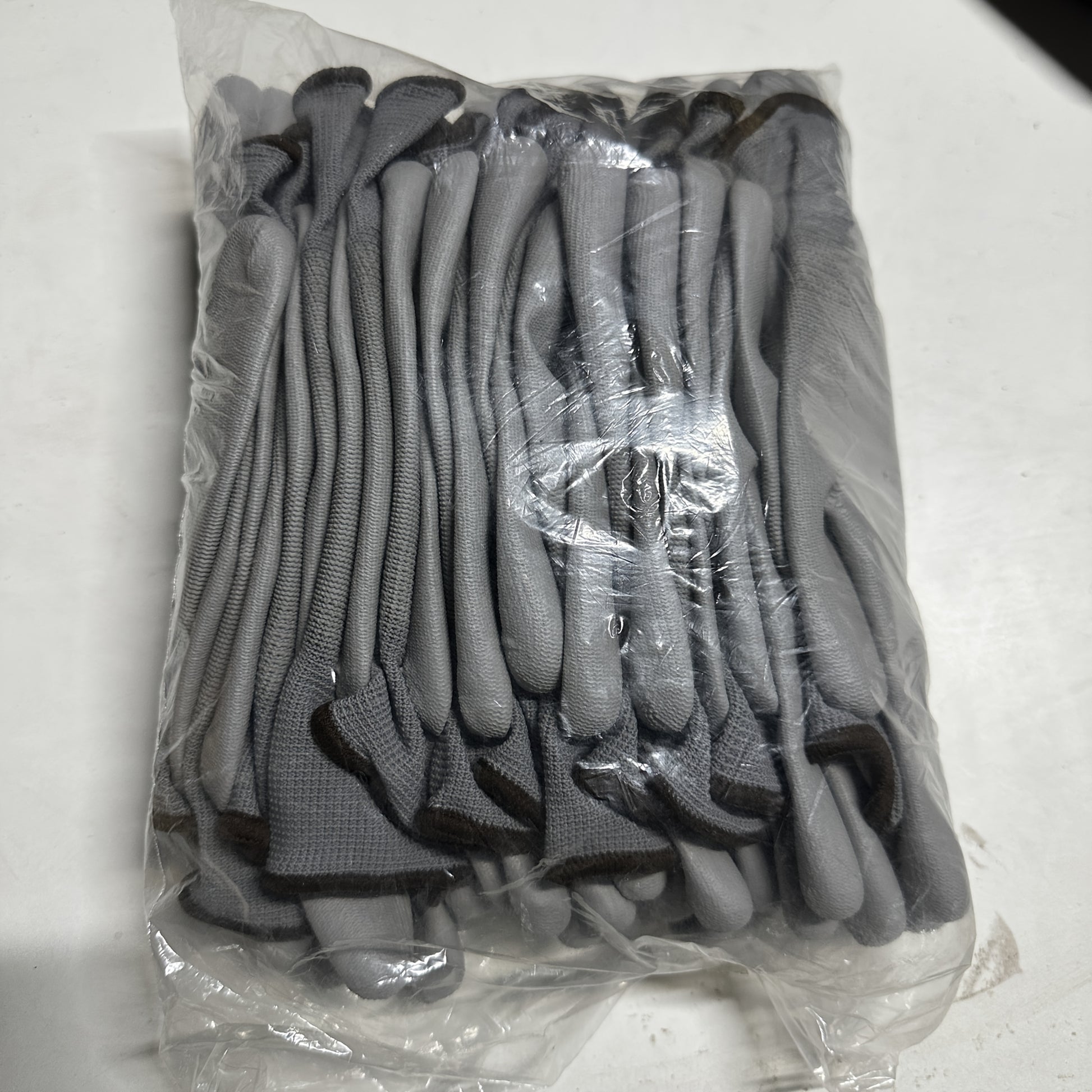 Paquete de 12 guantes de trabajo de poliéster antideslizantes grises para jardinería, construcción, reparación de autos