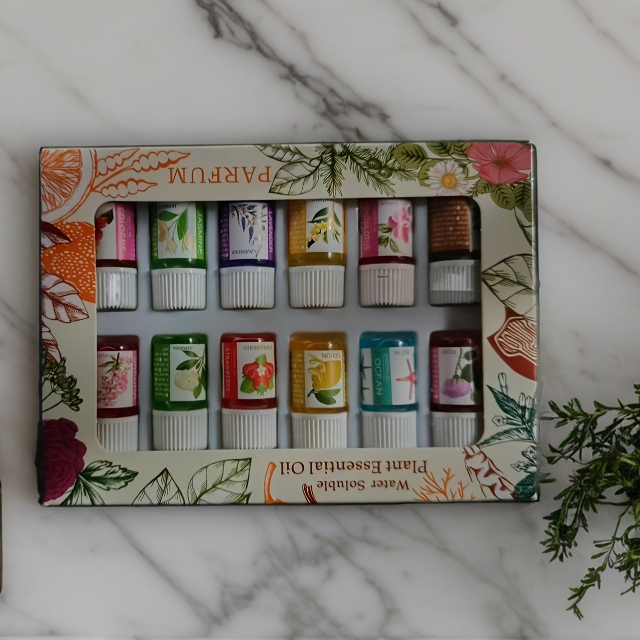 Set de 12 aceites esenciales solubles en agua para aromaterapia, fragancia relajante, ambientador de aire interior