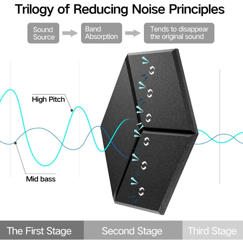 Paneles acústicos autoadhesivos de 30,48cm x 25,4cm resistentes al fuego, absorbentes de ruido, negro, gris, blanco, pack de 12
