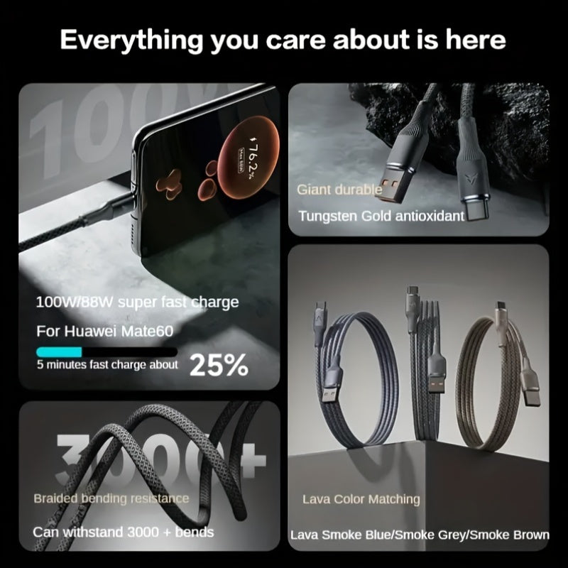 Cable trenzado de carga rápida USB Type-C 120W Tungsten Golden 3m