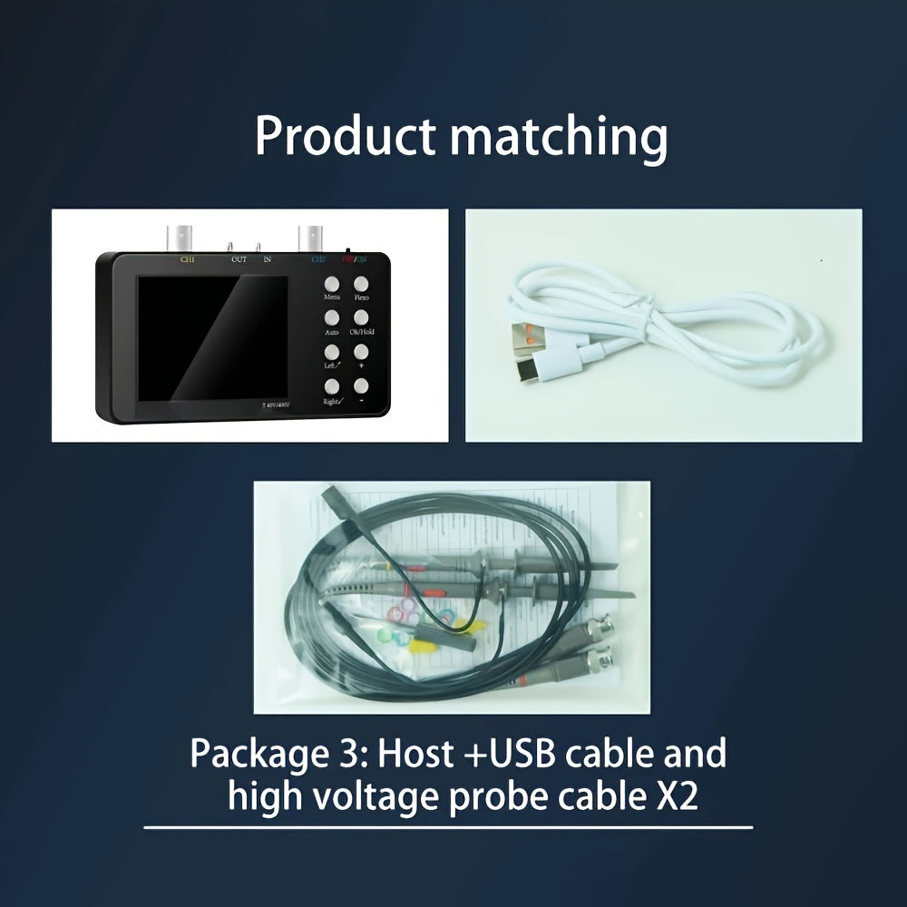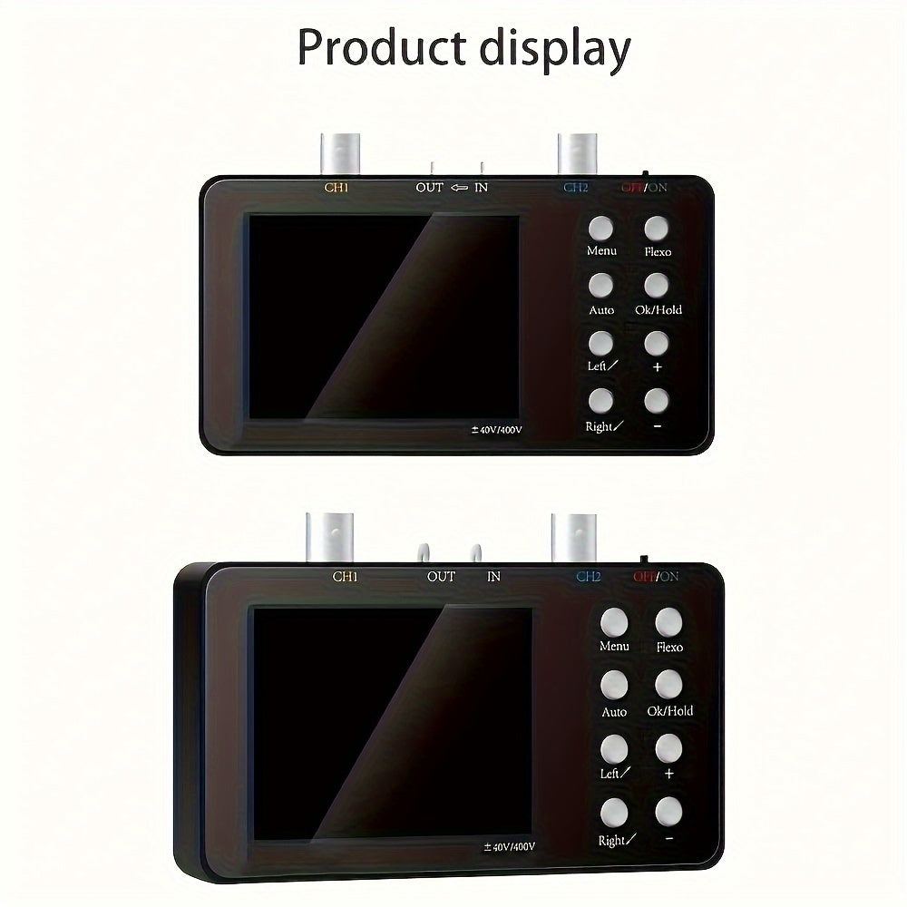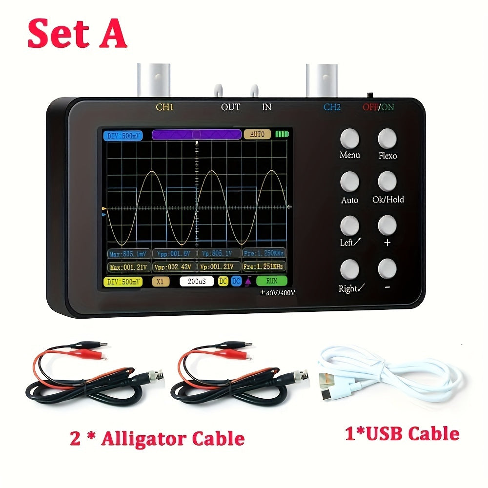 Descripción: Este producto es un osciloscopio digital de doble canal de 1 pieza con una ancho de banda analógico de 10M y una tasa de muestreo de 50M. Incluye patrones de Lissajous y puede mostrar lecturas de forma de onda de corriente de 6A en el osciloscopio.