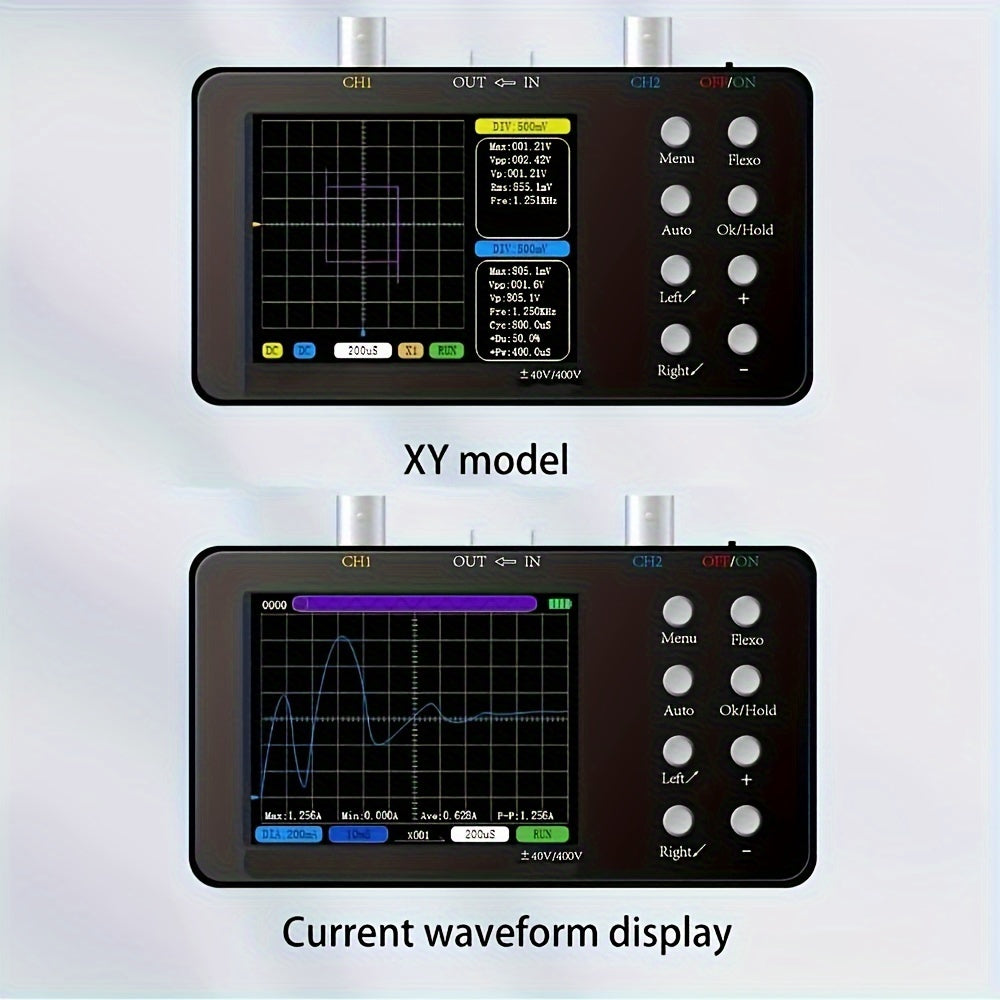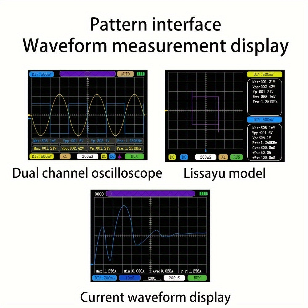 Función de visualización de medición de forma de onda, pantalla LCD de 3.2 pulgadas, resolución de 320 * 240, diseño de tres modos de visualización, puedes ajustarlo fácilmente a modo de osciloscopio de doble canal, modo X-Y y visualización de forma de onda actual.