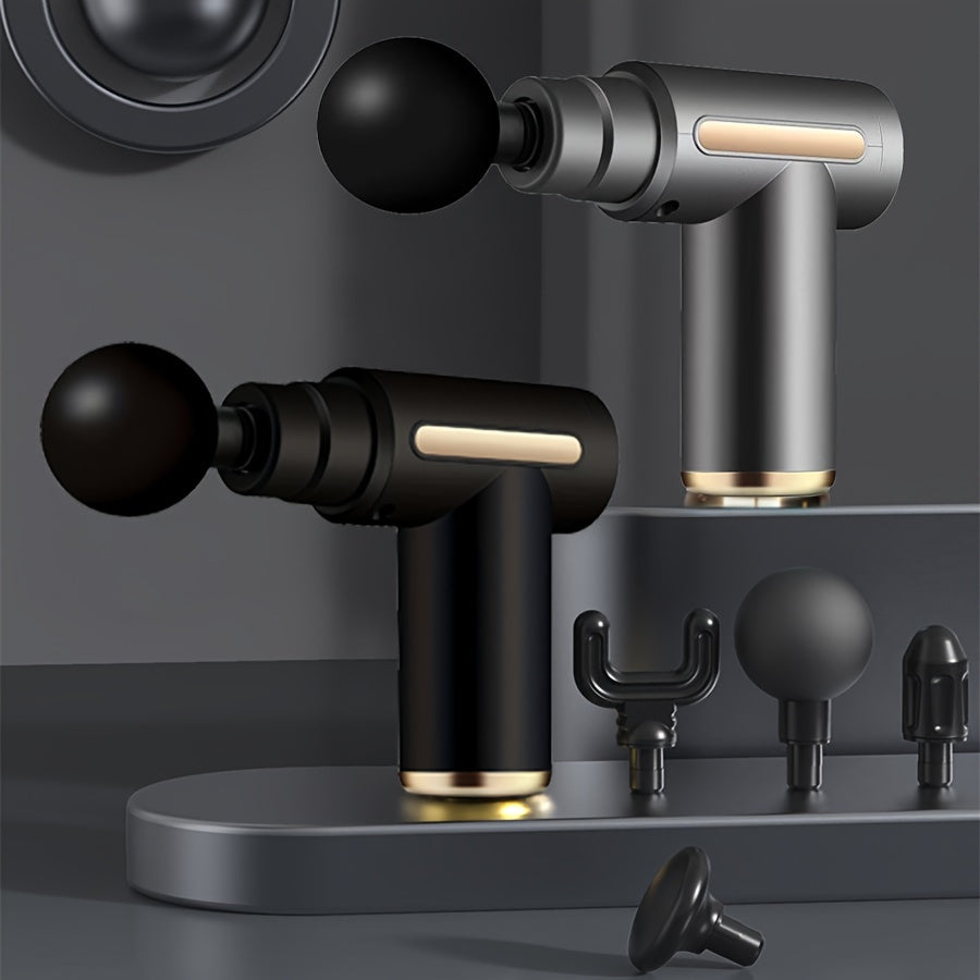 Pistola de masaje fascia con 4 cabezales, motor sin escobillas de 6 velocidades para alivio y recuperación muscular