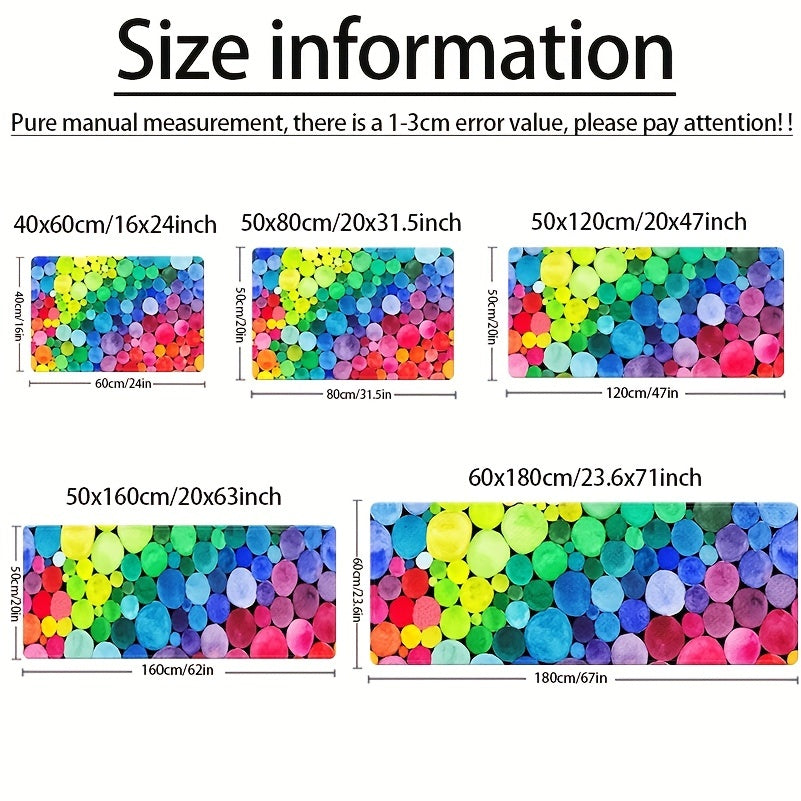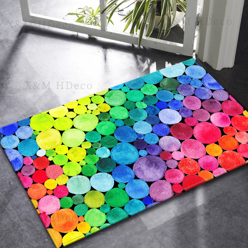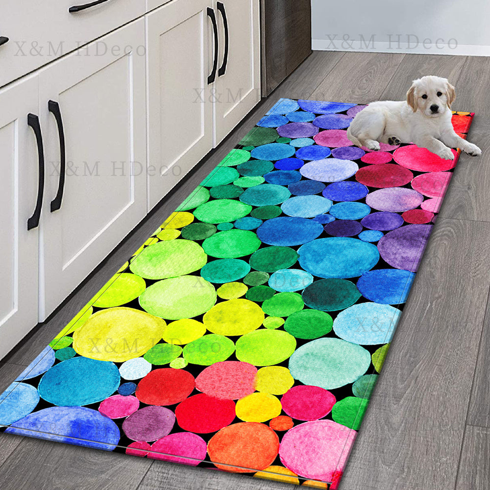 Alfombra de área de piedra arcoíris 3D en 5 tamaños, antideslizante, absorbente de agua, para cocina y baño, pasillo