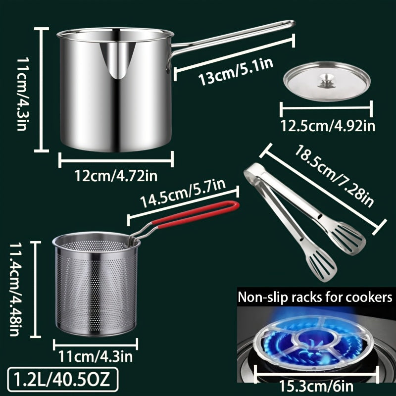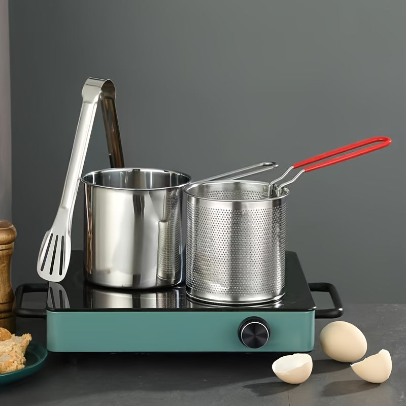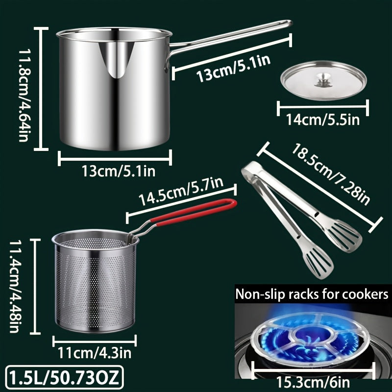 Freidora de acero inoxidable de 1 pieza, 1.7L para estufa de gas por inducción, duradera para exteriores