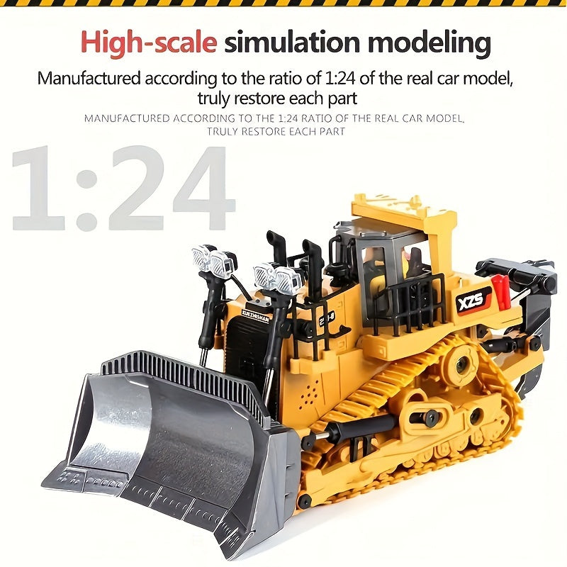 Excavadora control remoto de 2.4Ghz amarilla con efectos de iluminación, construcción de aleación, recargable por USB, para múltiples terrenos