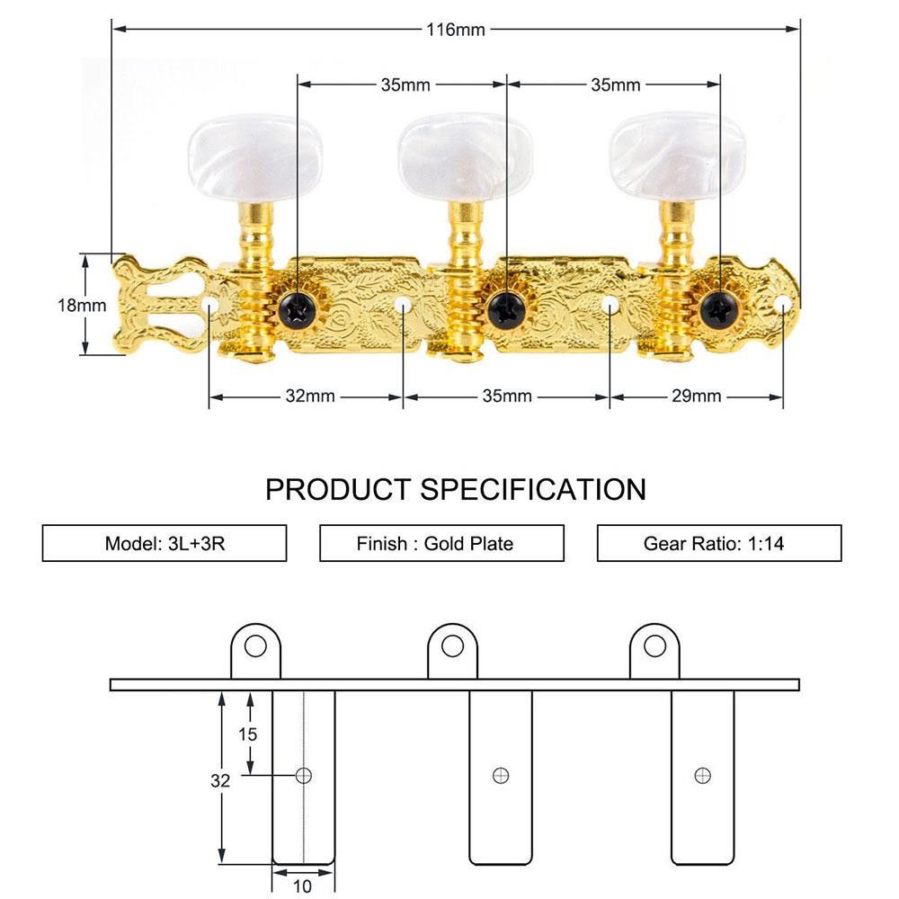 Clavijas de afinación para guitarra clásica, 2 piezas con tornillos de montaje y tuercas