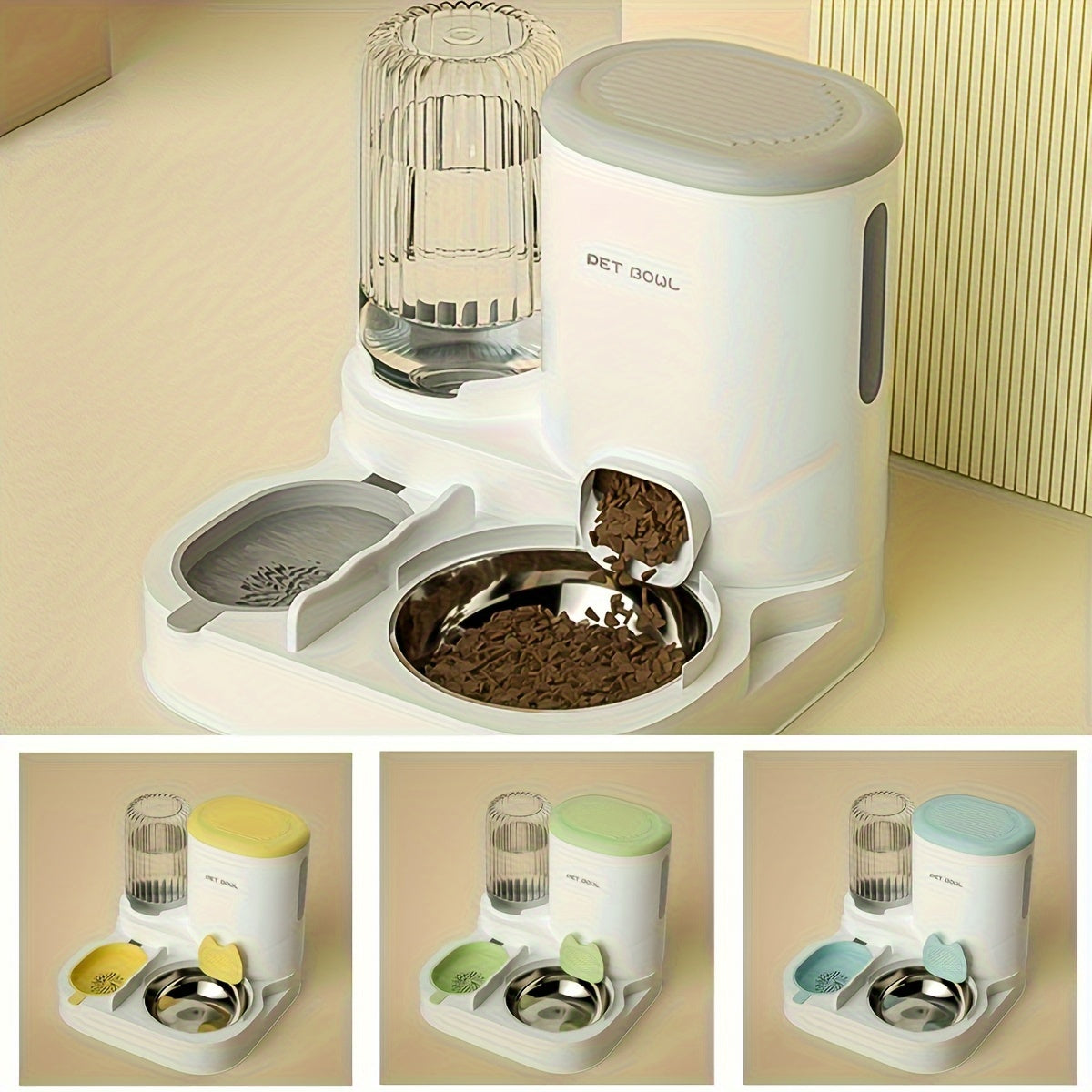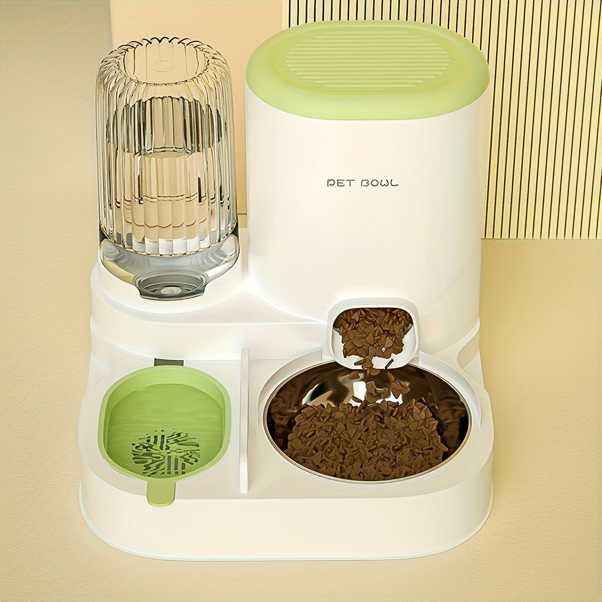 Comedero y dispensador de agua para gatos 2 en 1, cuenco de acero inoxidable, sin electricidad, lavable, estación para mascotas en interiores