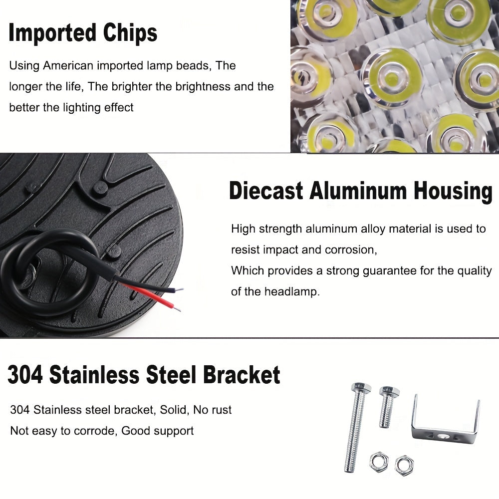 Pack de 2 barras de luz de trabajo redondas de 14 LED para camiones todoterreno, UTVs y barcos