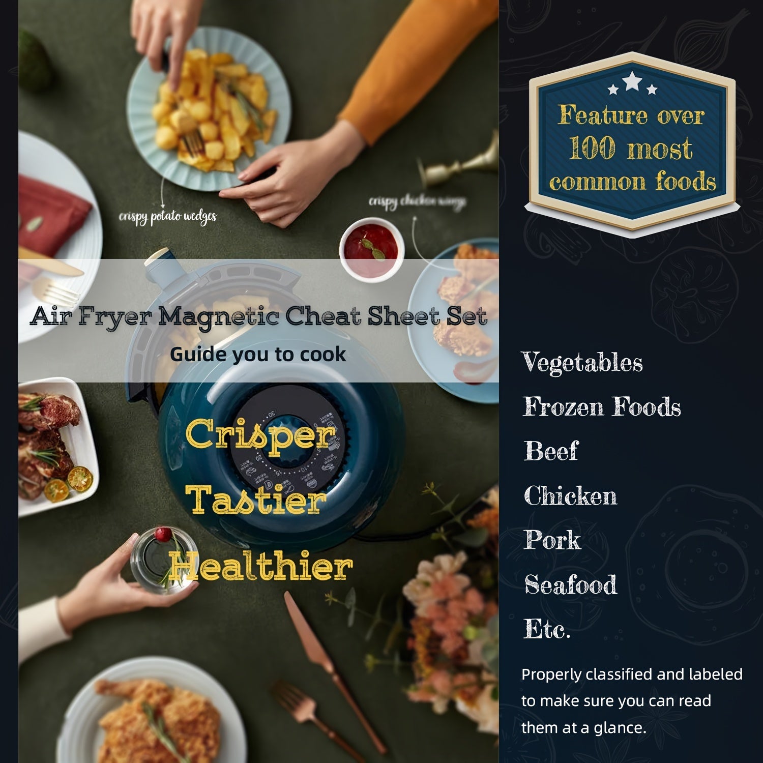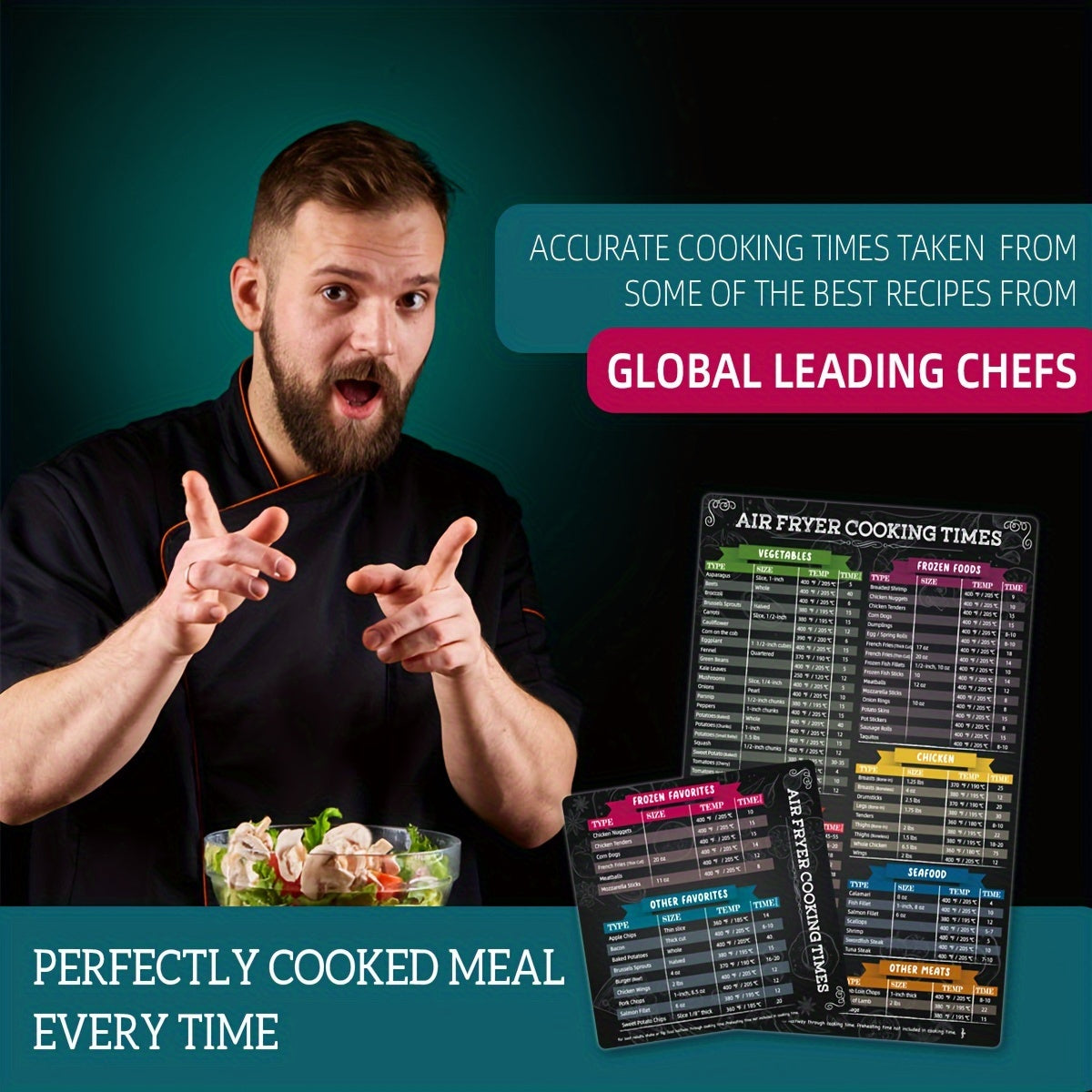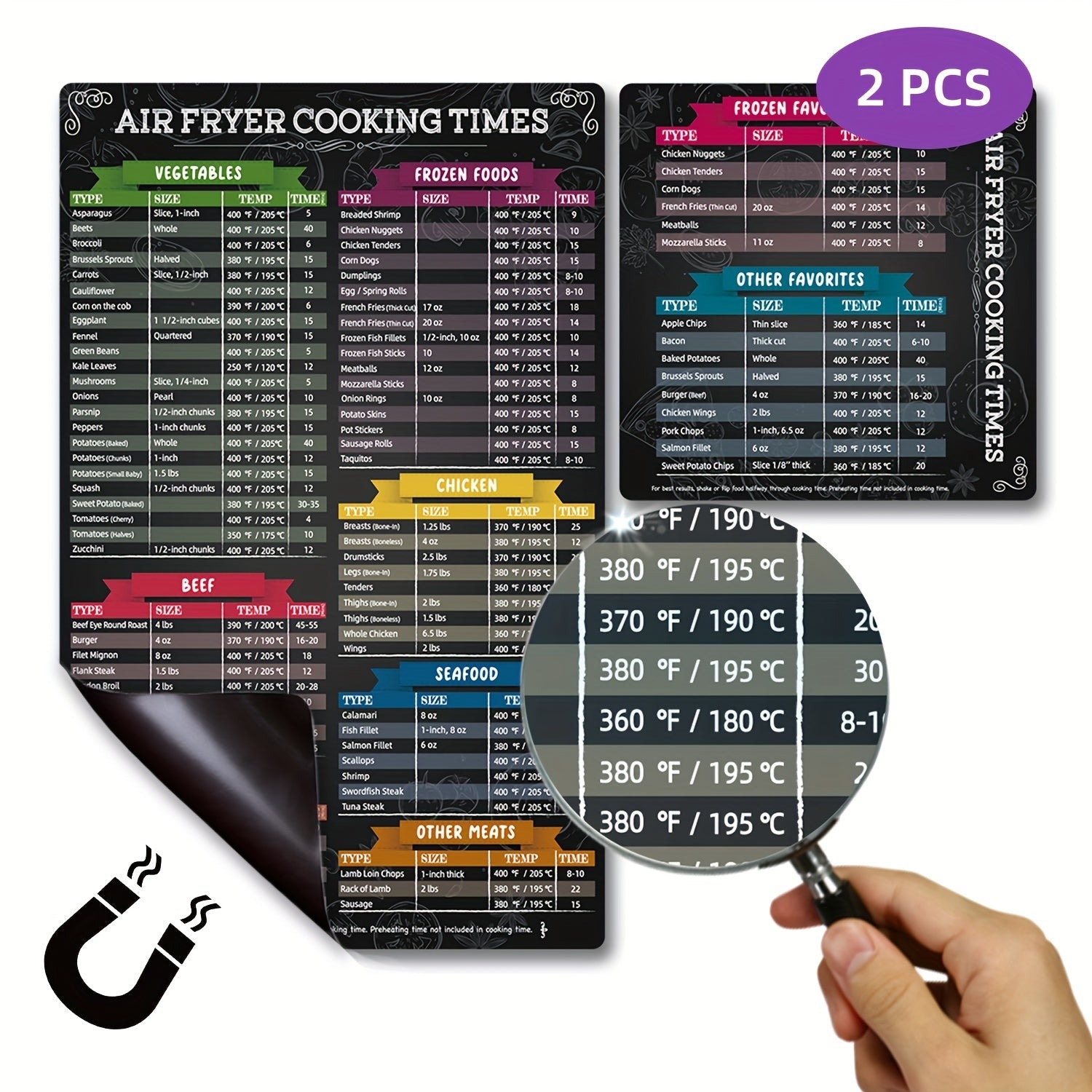 Juego de hoja de trucos para freidora de aire de 2 piezas Guía de tiempo de cocción en la cocina para verduras, carne, mariscos