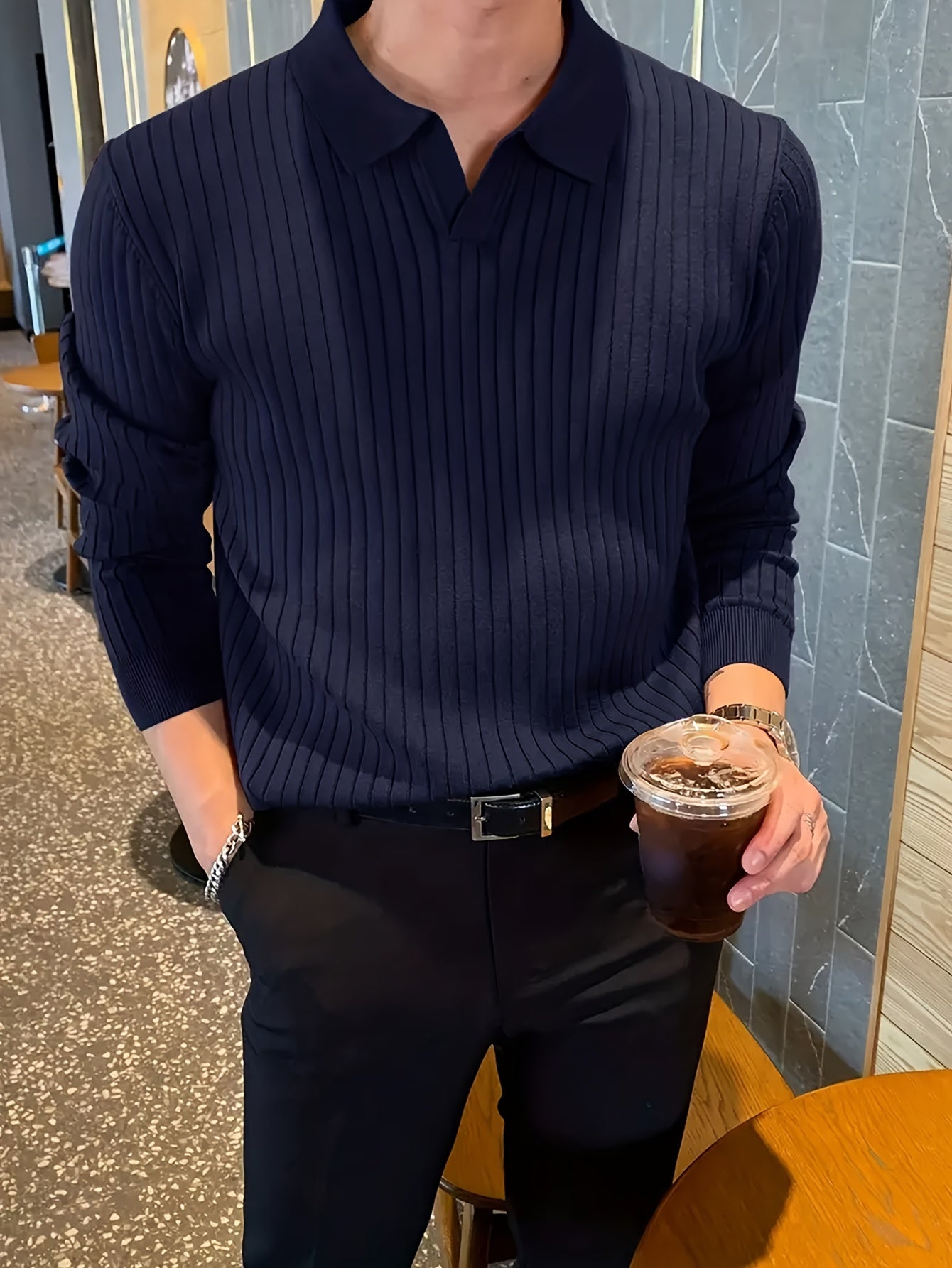 Suéter de cuello polo para hombre de corte regular, manga larga, color sólido, de rayón, para otoño y primavera