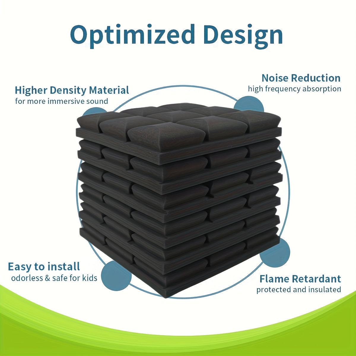 Paquete de 24 paneles de espuma acústica 30.48x30.48x5.08 cm, baldosas de pared insonorizadas para oficina y estudio, negro y gris