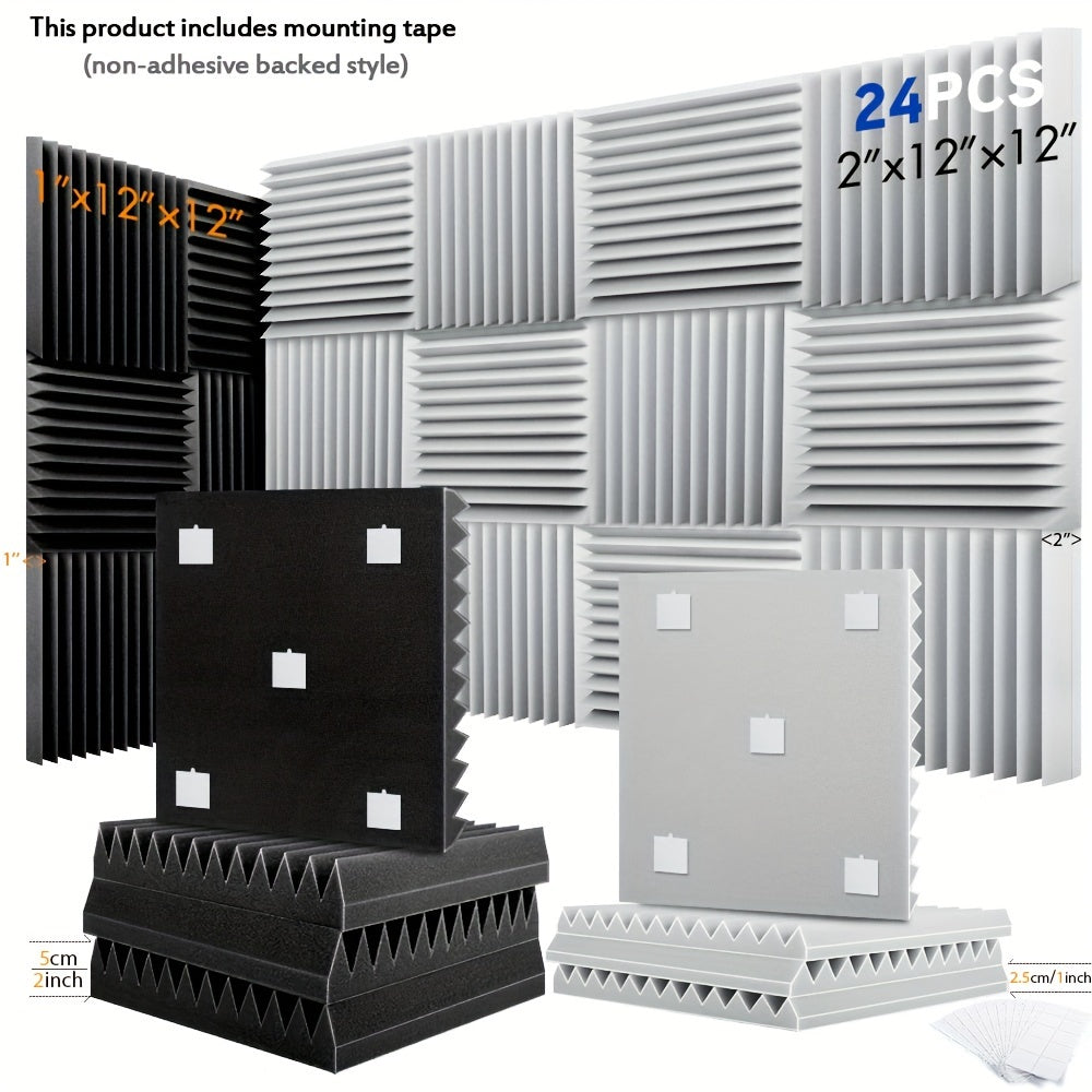 Paquete de 24 paneles de espuma acústica 30x30cm, cuñas absorbentes de sonido para estudio, oficina en casa, negro, blanco, gris