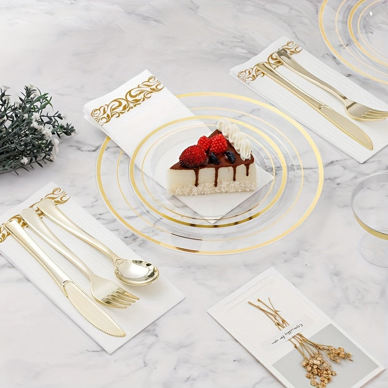 Platos de plástico dorados para fiestas de 19-26 cm, vajilla desechable de alta resistencia