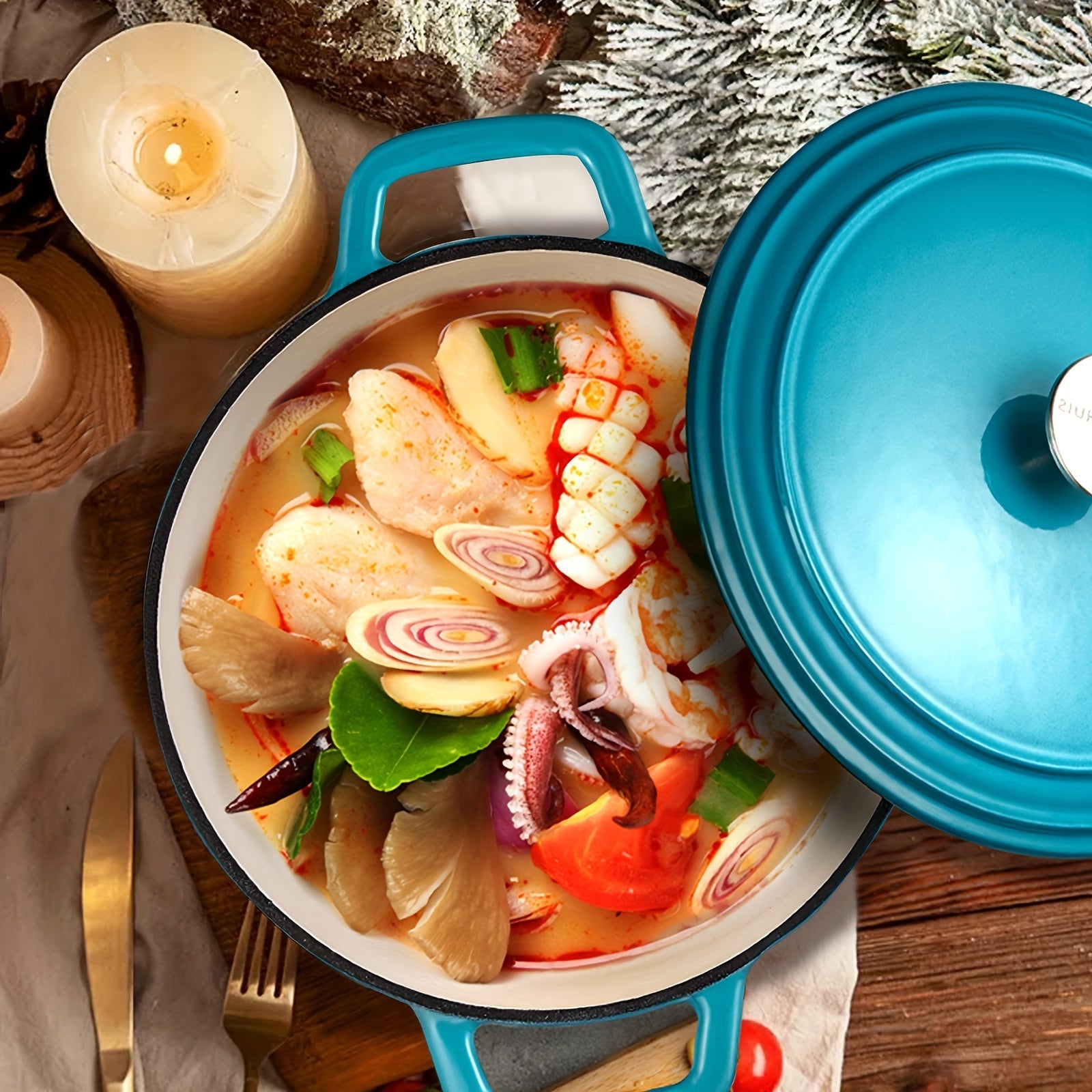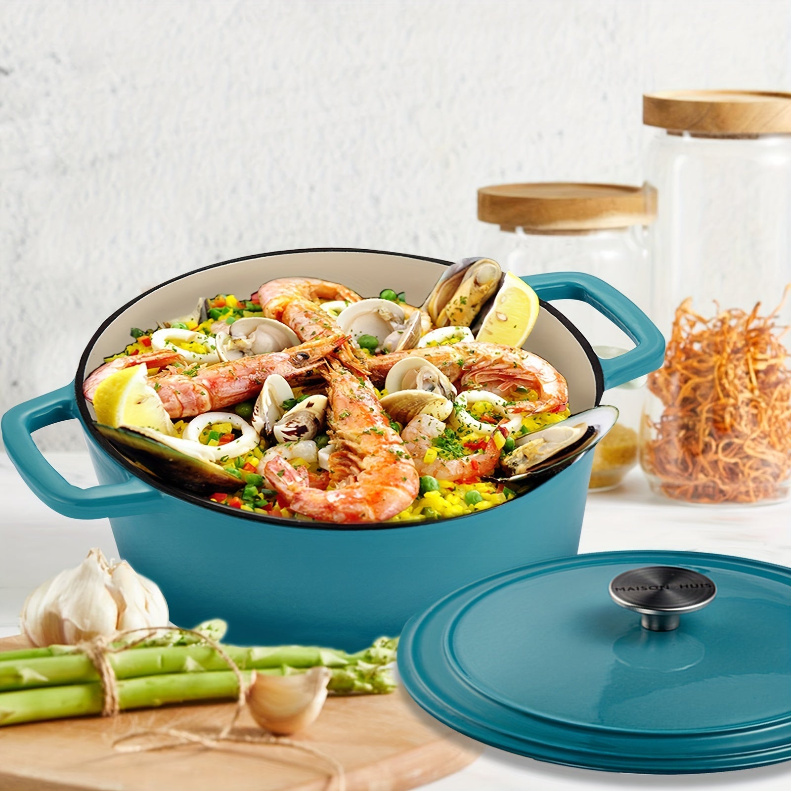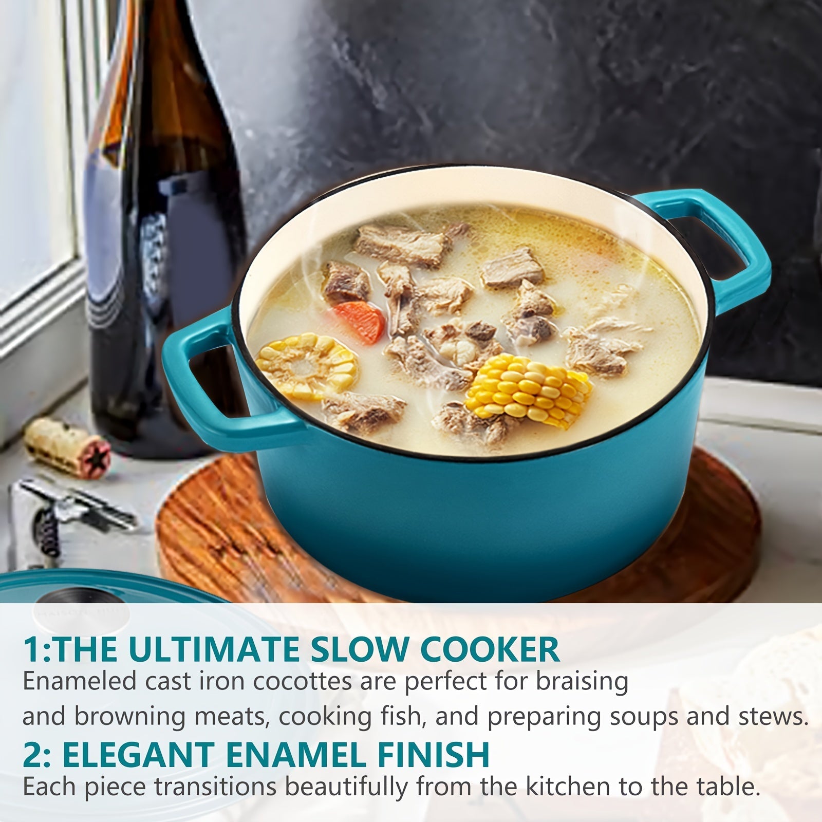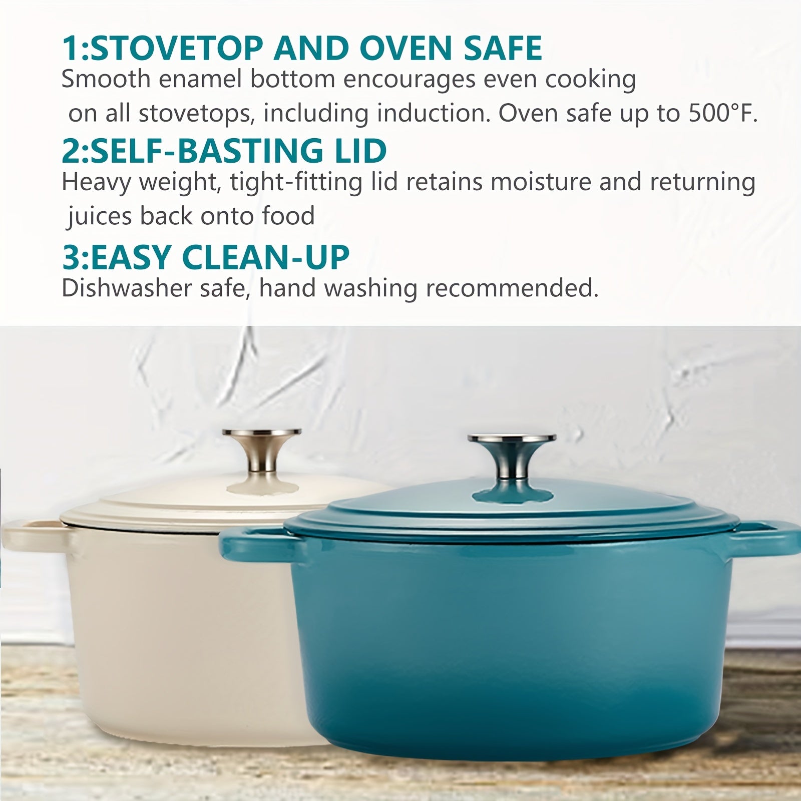 Olla de hierro fundido esmaltado de 3.7 cuartos con tapa, antiadherente, olla redonda para cocinar
