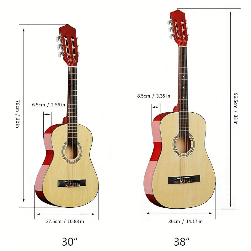 Kit de guitarra acústica clásica para adultos y adolescentes de 30/38 pulgadas con púas, bolsa y estuche