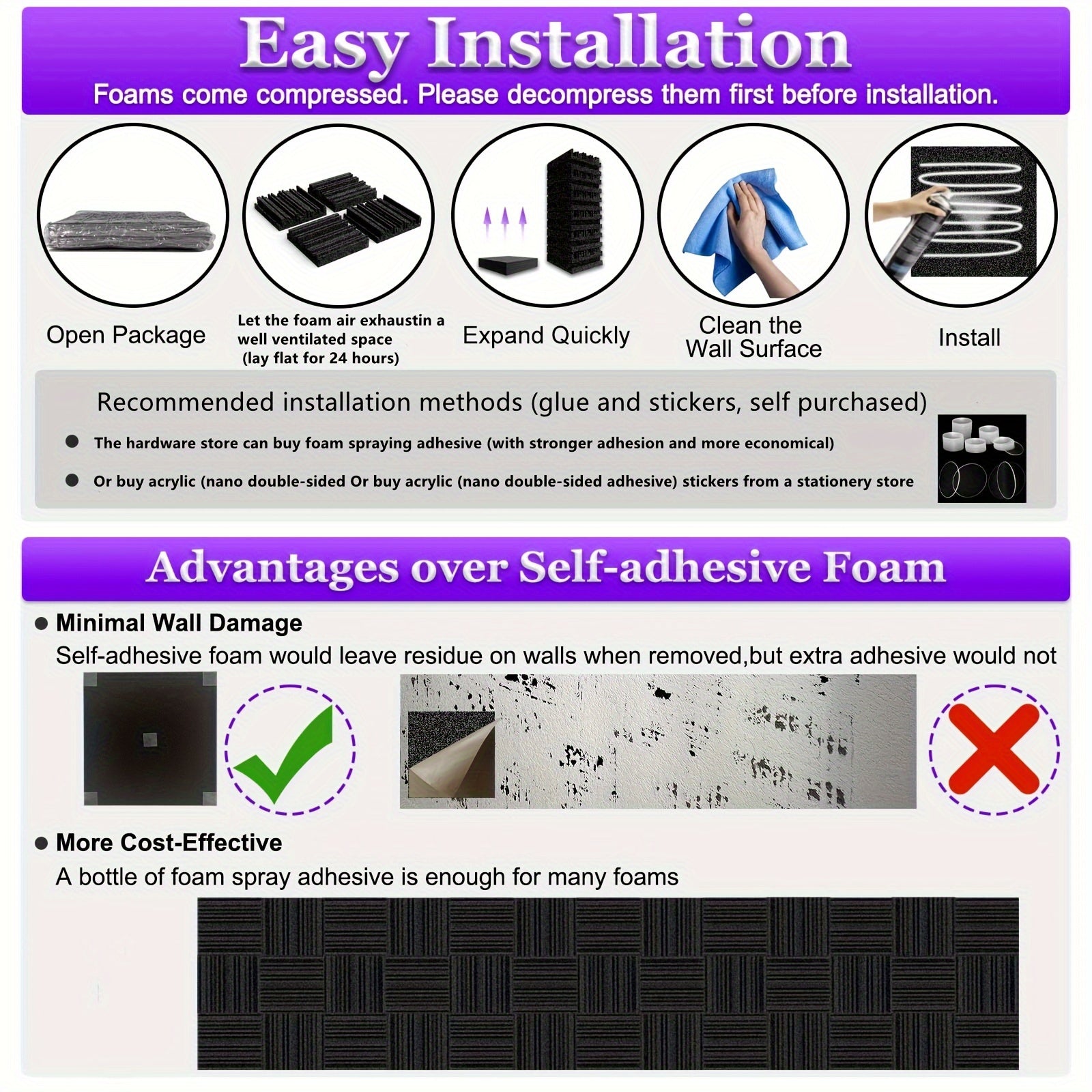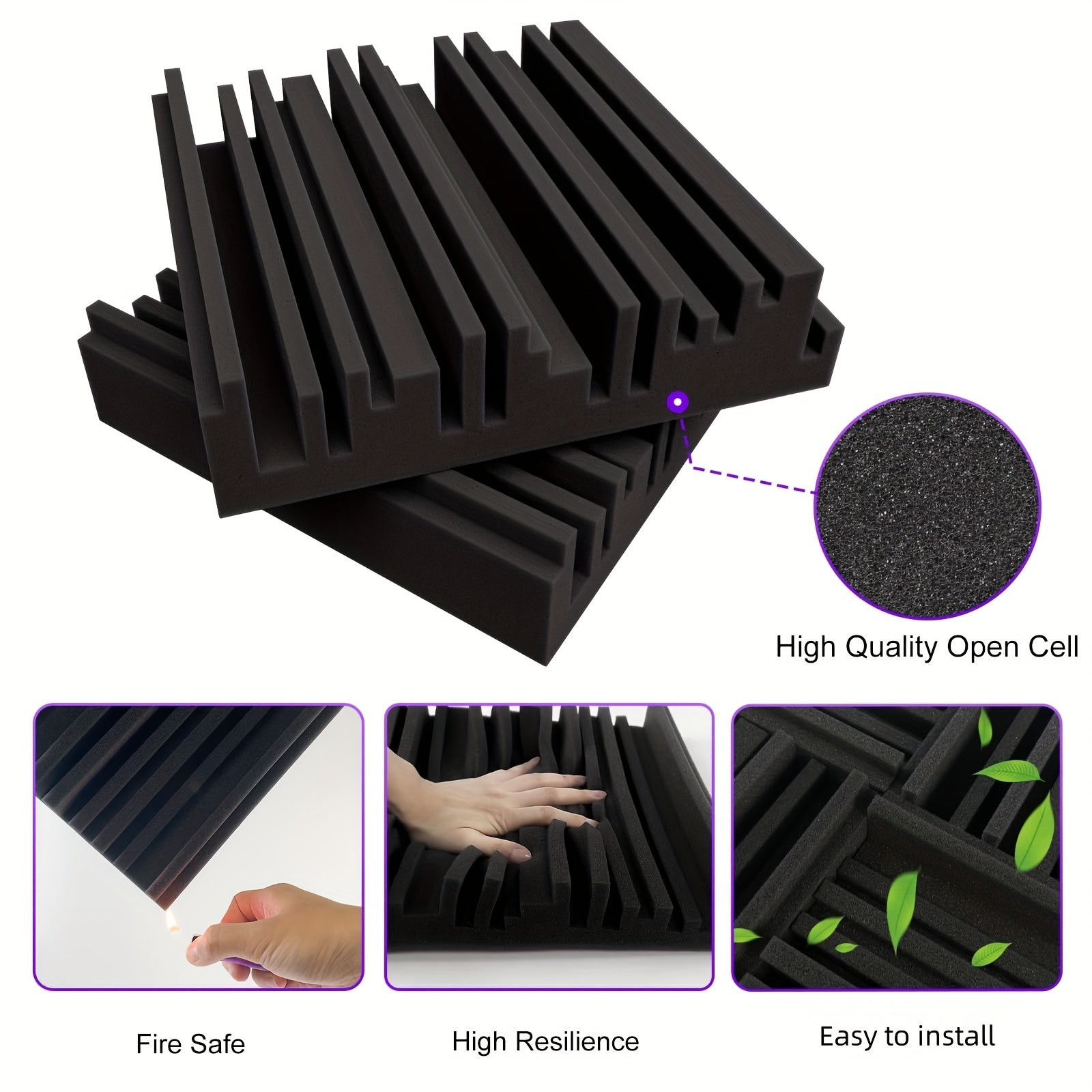 36 piezas de paneles de espuma acústica ignífuga negra para estudios de insonorización y cines en casa