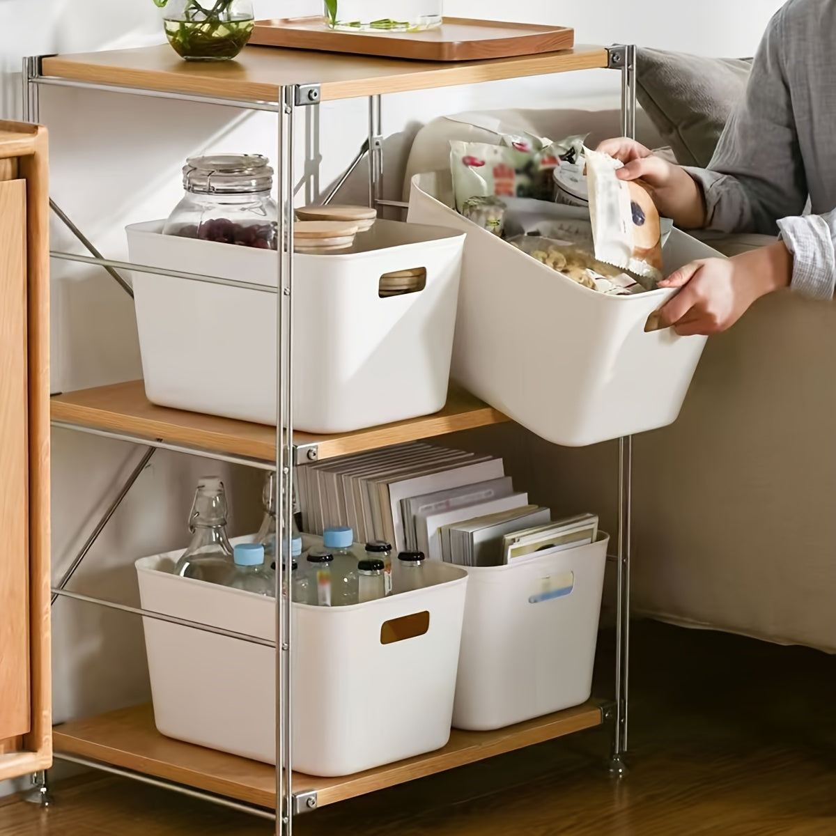Juego de 4-8 cestas de almacenamiento blancas para juguetes, snacks, ropa interior, desorden en la cocina