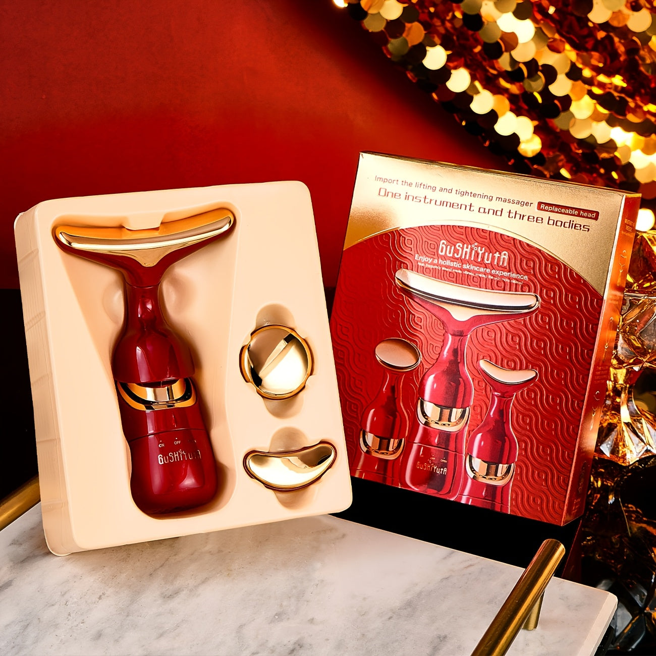 Masajeador facial y ocular 4 en 1, alimentado por batería, libre de formaldehído para hombres y mujeres