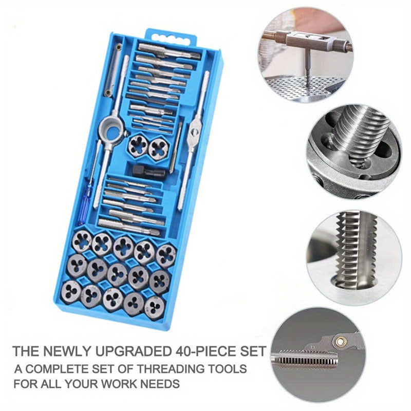 Juego de 40 piezas de juego de roscar y machos métricos de acero aleado, incluye llave para roscado y machihembrado DIY