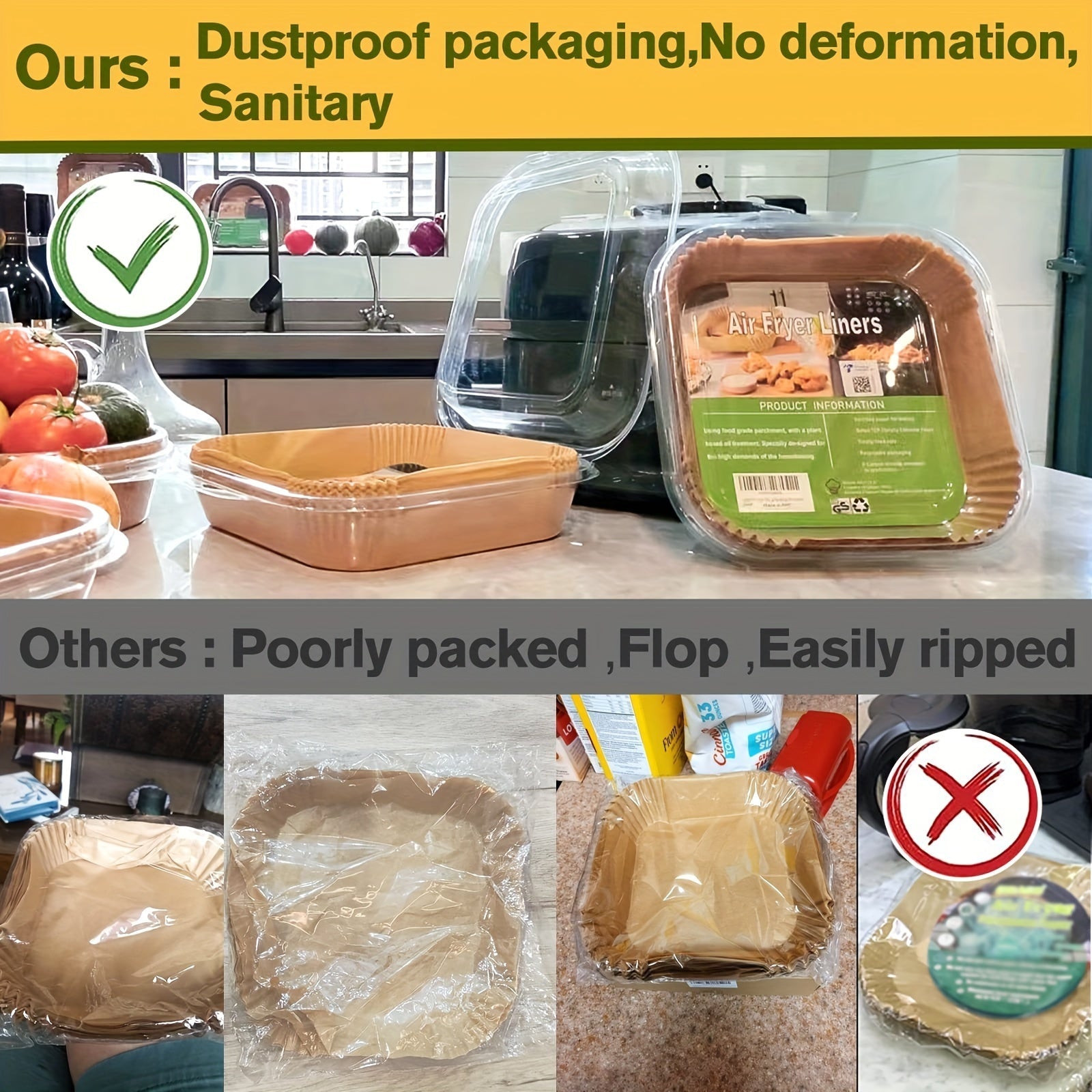 50 piezas de liners desechables para freidora de aire, redondos y cuadrados, impermeables, a prueba de aceite, para hornear y microondas
