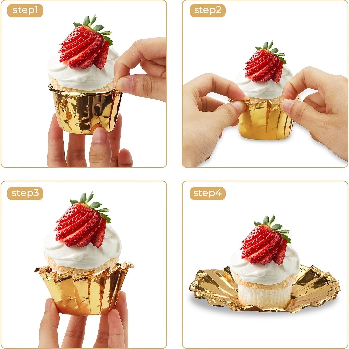 50 unidades de moldes de papel dorados desechables para hornear y servir