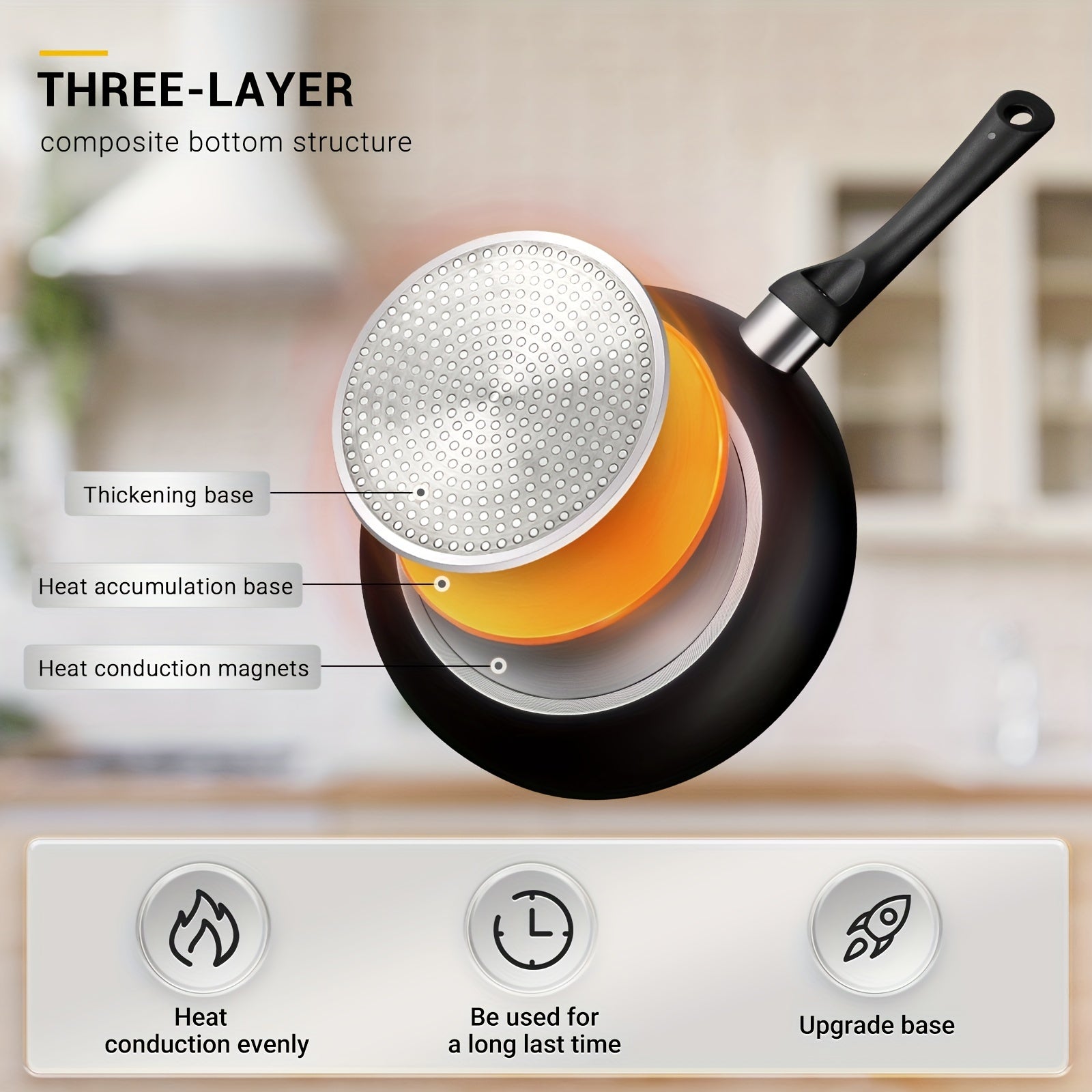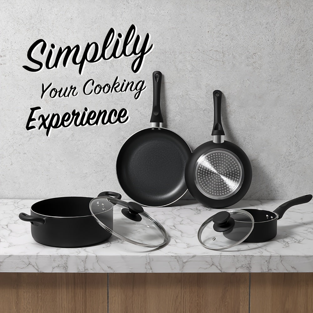 Juego de utensilios de cocina de aluminio antiadherente de 6 piezas con compatibilidad para inducción, que incluye sartén y olla de stock