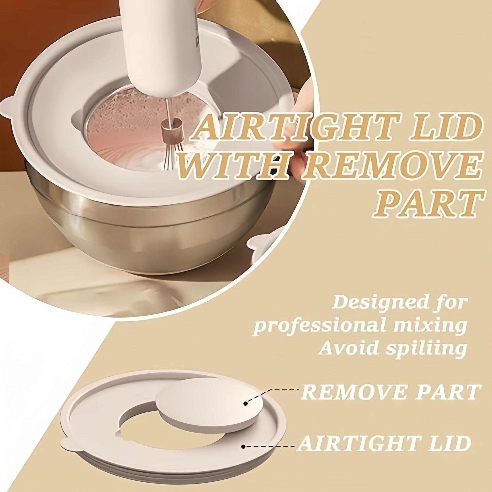 Juego de 6 cuencos de acero inoxidable con tapas y ralladores, color caqui, capacidad de 0.95L a 6.5L