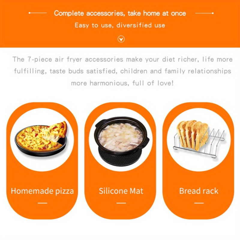 Juego de accesorios para freidora de aire antiadherentes y libres de BPA de 7 piezas para freidoras de 4.8Qt y 6.3Qt