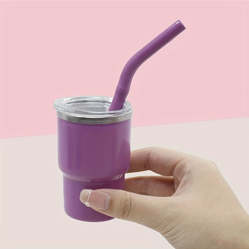 Taza de viaje de 3oz con interior de acero inoxidable, exterior de plástico, funda de silicona y pajilla