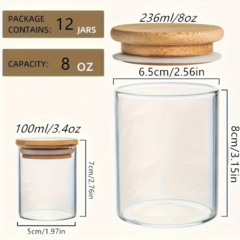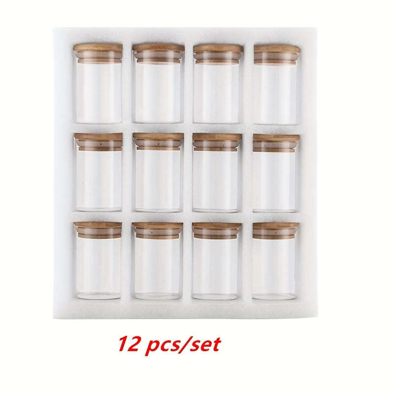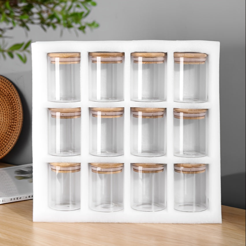 12 frascos de vidrio para especias con tapas de bambú, organización de cocina, embalaje seguro