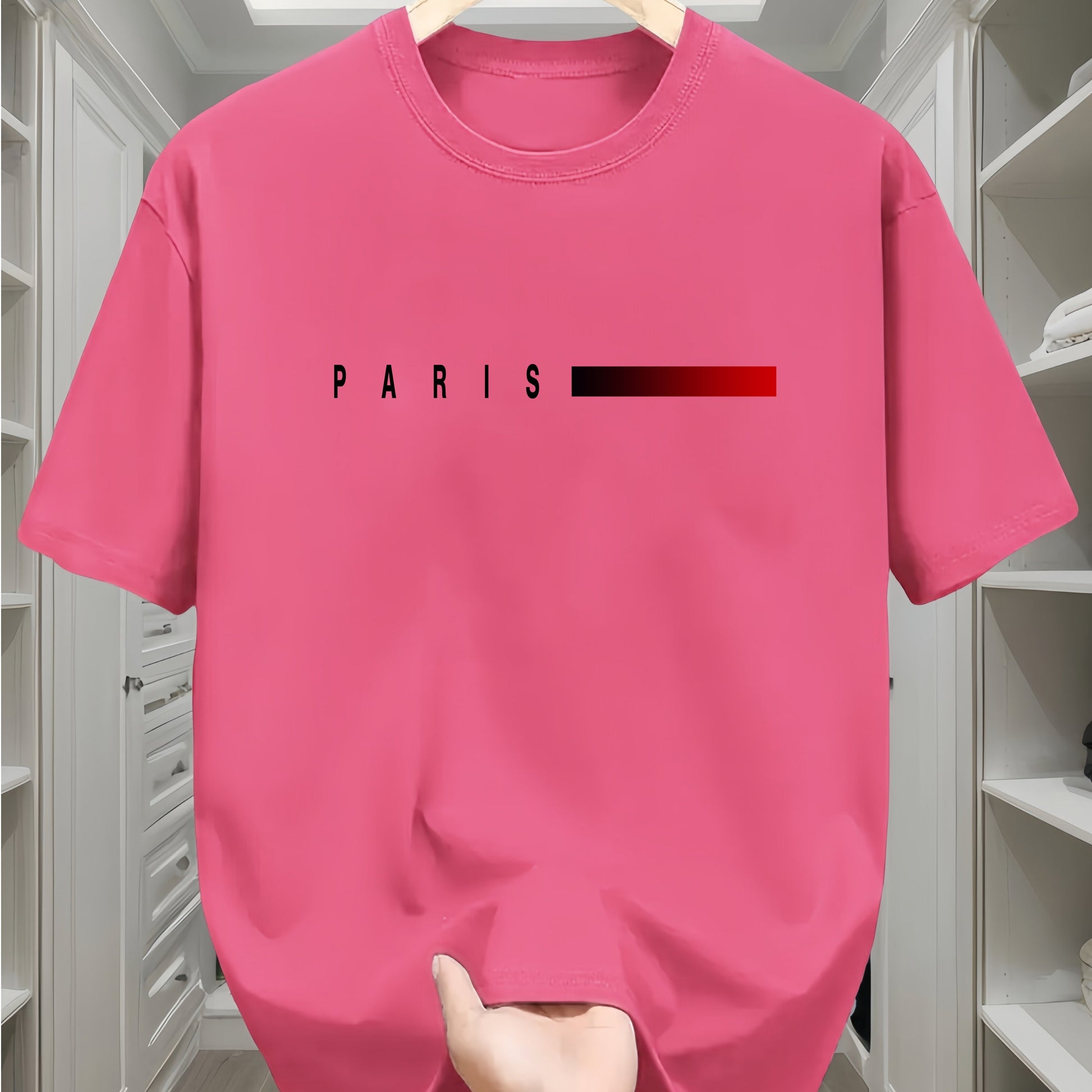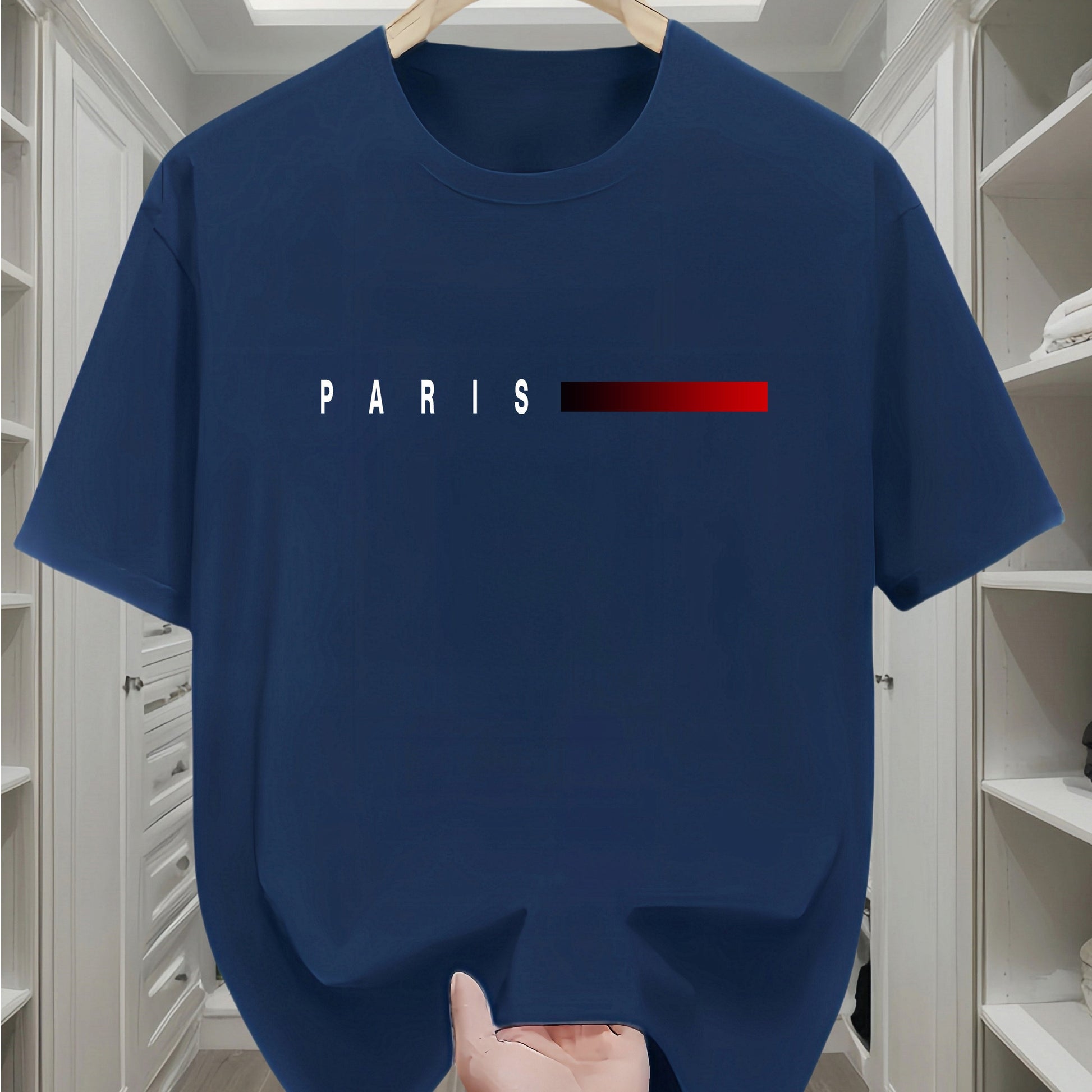 Camiseta de algodón para hombre con estampado de París y patrón geométrico, cuello redondo, manga corta, casual, para todas las estaciones, adolescente, corte regular