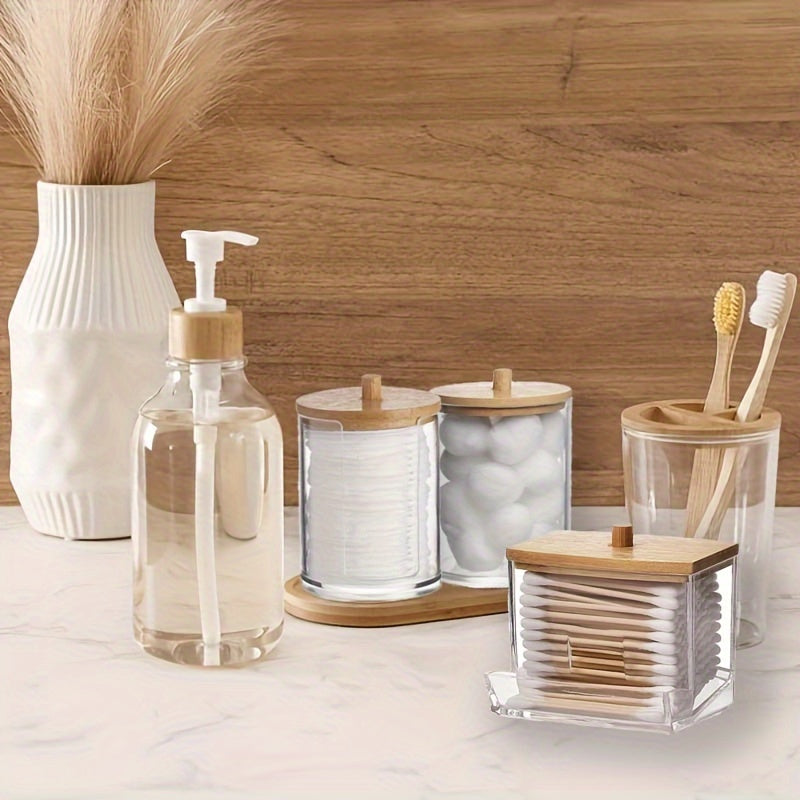 Juego de 3 soportes de plástico transparente para hisopos de algodón, organizador de almacenamiento para baño